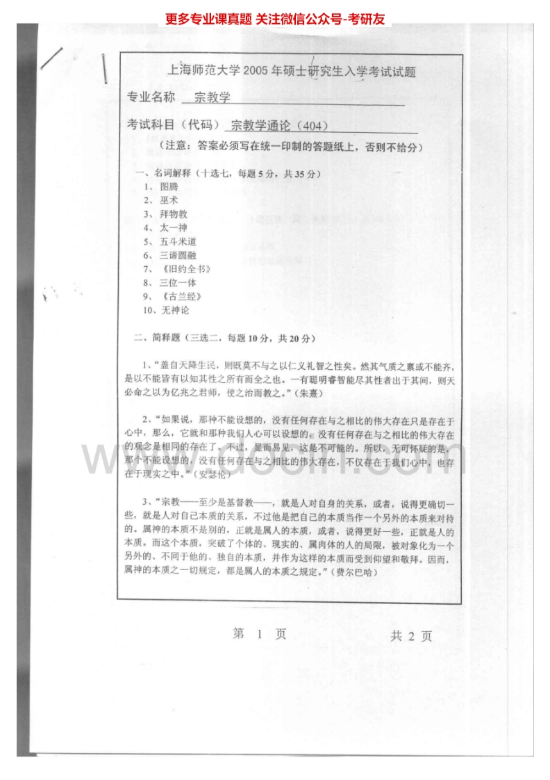 上海师范大学宗教学通论2004-2005考研真题汇编.Image.Marked猴哥6个月前发布关注私信1.60MB4页07611上海师范大学宗教学通论2004-2005考研真题汇编.Image.Marked此内容为免费资源,请登录后查看¥0 登录查看免费资源 第1页 / 共4页 第2页 / 共4页 第3页 / 共4页 该文档为免费文档,您可直接下载完整版进行阅读 © 版权声明文章版权归作者所有,未经允许请勿转载。THE END考研专业课 喜欢就支持一下吧点赞11赞赏 分享QQ空间微博QQ好友海报分享复制链接收藏