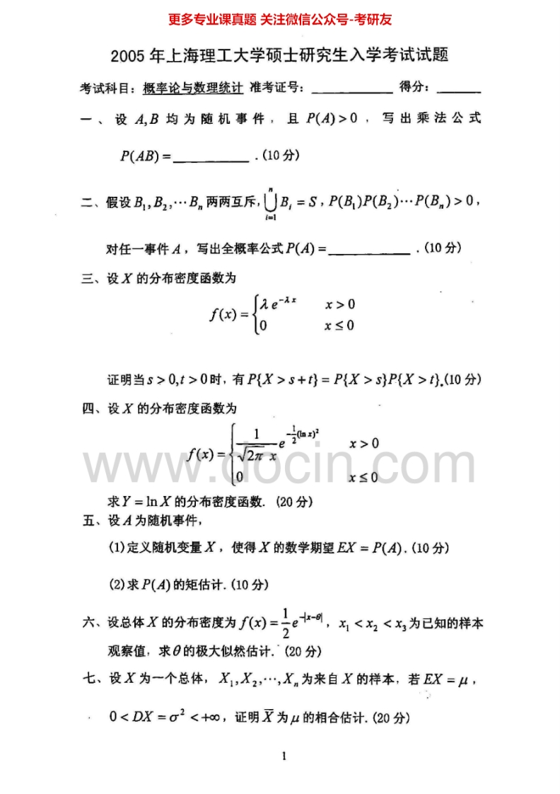 上海理工大学811概率论与数理统计2004-2007、2013其中2005有答案考研真题汇编.Image.Marked猴哥6个月前发布关注私信1.43MB10页05438上海理工大学811概率论与数理统计2004-2007、2013其中2005有答案考研真题汇编.Image.Marked此内容为免费资源,请登录后查看¥0 登录查看免费资源 第1页 / 共10页 第2页 / 共10页 第3页 / 共10页 该文档为免费文档,您可直接下载完整版进行阅读 © 版权声明文章版权归作者所有,未经允许请勿转载。THE END《上海理工大学》(811)概率论与数理统计考研资料考研专业课 喜欢就支持一下吧点赞38赞赏 分享QQ空间微博QQ好友海报分享复制链接收藏