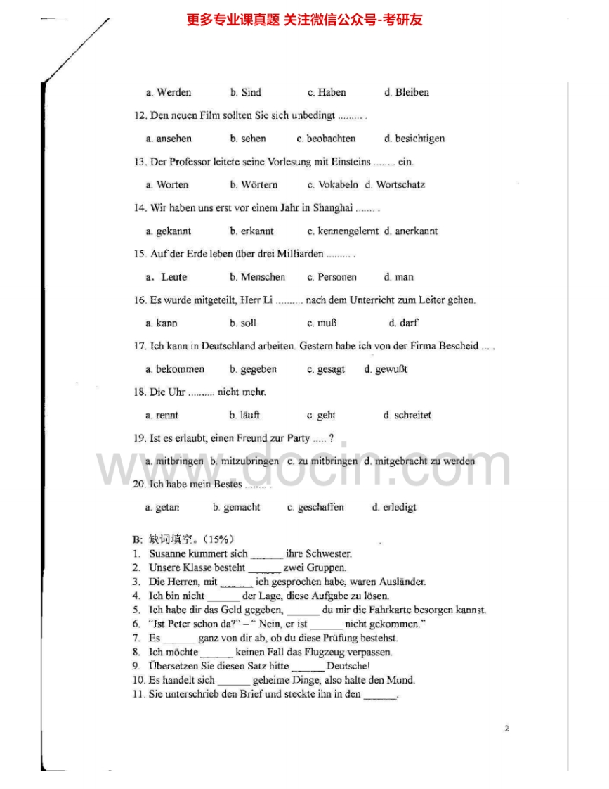 上海理工大学244德语2002-2005、2007、2009考研真题汇编猴哥6个月前发布关注私信8.73MB51页03416上海理工大学244德语2002-2005、2007、2009考研真题汇编此内容为免费资源,请登录后查看¥0 登录查看免费资源 第1页 / 共51页 第2页 / 共51页 第3页 / 共51页 该文档为免费文档,您可直接下载完整版进行阅读 © 版权声明文章版权归作者所有,未经允许请勿转载。THE END考研专业课 喜欢就支持一下吧点赞16赞赏 分享QQ空间微博QQ好友海报分享复制链接收藏
