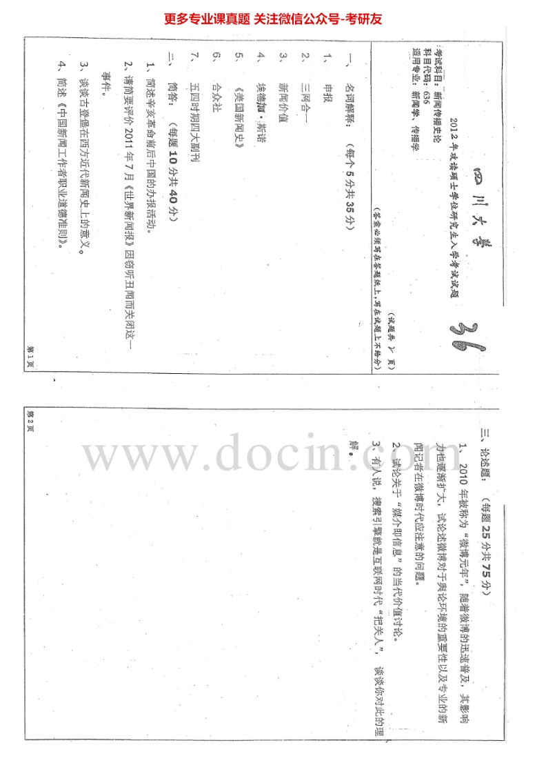 四川大学636新闻传播史论2010-2015考研真题汇编.Image.Marked猴哥6个月前发布关注私信2.28MB8页09054四川大学636新闻传播史论2010-2015考研真题汇编.Image.Marked此内容为免费资源,请登录后查看¥0 登录查看免费资源 第1页 / 共8页 第2页 / 共8页 第3页 / 共8页 该文档为免费文档,您可直接下载完整版进行阅读 © 版权声明文章版权归作者所有,未经允许请勿转载。THE END《四川大学》(636)新闻传播史论考研资料考研专业课 喜欢就支持一下吧点赞54赞赏 分享QQ空间微博QQ好友海报分享复制链接收藏
