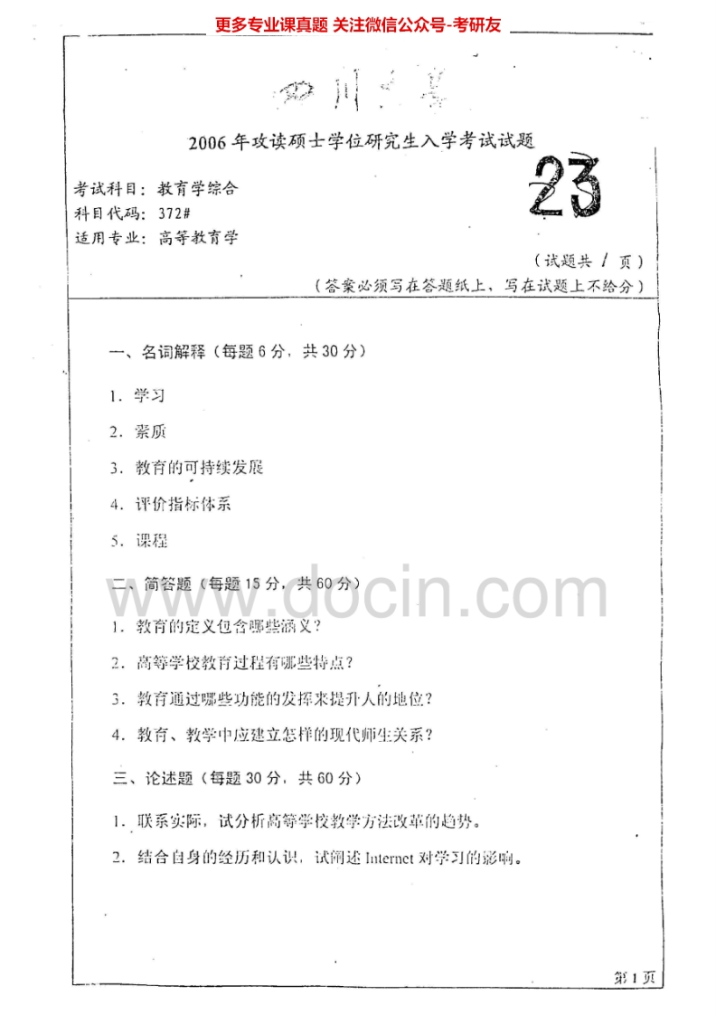 四川大学653教育学综合2005-2006、2013-2015考研真题汇编.Image.Marked猴哥6个月前发布关注私信4.63MB10页03541四川大学653教育学综合2005-2006、2013-2015考研真题汇编.Image.Marked此内容为免费资源,请登录后查看¥0 登录查看免费资源 第1页 / 共10页 第2页 / 共10页 第3页 / 共10页 该文档为免费文档,您可直接下载完整版进行阅读 © 版权声明文章版权归作者所有,未经允许请勿转载。THE END《四川大学》(653)文物学概论考研资料考研专业课 喜欢就支持一下吧点赞41赞赏 分享QQ空间微博QQ好友海报分享复制链接收藏