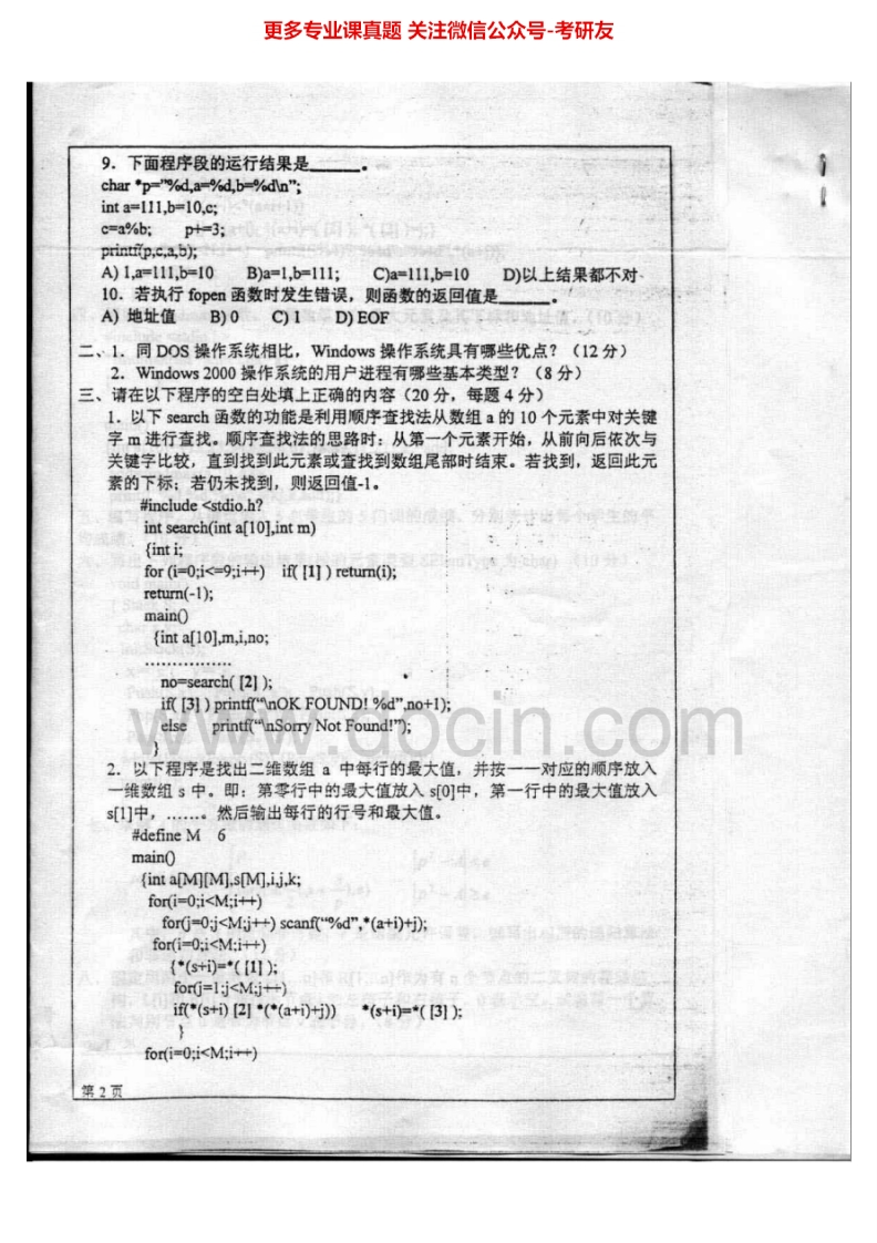 四川大学853计算机技术2002、2005-2007、2010考研真题汇编.Image.Marked猴哥6个月前发布关注私信11.63MB25页07758四川大学853计算机技术2002、2005-2007、2010考研真题汇编.Image.Marked此内容为免费资源,请登录后查看¥0 登录查看免费资源 第1页 / 共25页 第2页 / 共25页 第3页 / 共25页 该文档为免费文档,您可直接下载完整版进行阅读 © 版权声明文章版权归作者所有,未经允许请勿转载。THE END考研专业课 喜欢就支持一下吧点赞58赞赏 分享QQ空间微博QQ好友海报分享复制链接收藏