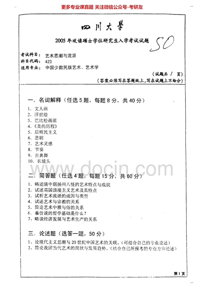 四川大学923艺术思潮与流派2004-2006、2010、2012-2015考研真题汇编.Image.Marked猴哥6个月前发布关注私信3.90MB14页07861四川大学923艺术思潮与流派2004-2006、2010、2012-2015考研真题汇编.Image.Marked此内容为免费资源,请登录后查看¥0 登录查看免费资源 第1页 / 共14页 第2页 / 共14页 第3页 / 共14页 该文档为免费文档,您可直接下载完整版进行阅读 © 版权声明文章版权归作者所有,未经允许请勿转载。THE END《四川大学》(923)艺术史综合考研资料考研专业课 喜欢就支持一下吧点赞61赞赏 分享QQ空间微博QQ好友海报分享复制链接收藏
