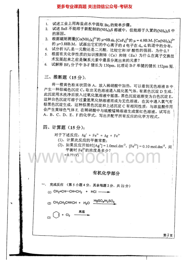 四川大学937大学化学2007、2010-2015考研真题汇编.Image.Marked猴哥6个月前发布关注私信6.19MB21页05262四川大学937大学化学2007、2010-2015考研真题汇编.Image.Marked此内容为免费资源,请登录后查看¥0 登录查看免费资源 第1页 / 共21页 第2页 / 共21页 第3页 / 共21页 该文档为免费文档,您可直接下载完整版进行阅读 © 版权声明文章版权归作者所有,未经允许请勿转载。THE END考研专业课 喜欢就支持一下吧点赞62赞赏 分享QQ空间微博QQ好友海报分享复制链接收藏