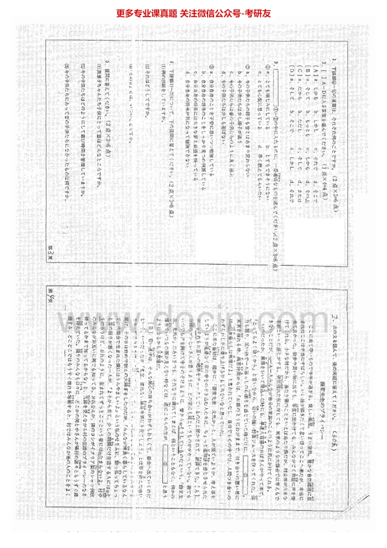 四川大学919日语专业综合知识2007-2015考研真题汇编.Image.Marked猴哥6个月前发布关注私信31.98MB97页07750四川大学919日语专业综合知识2007-2015考研真题汇编.Image.Marked此内容为免费资源,请登录后查看¥0 登录查看免费资源 第1页 / 共97页 第2页 / 共97页 第3页 / 共97页 该文档为免费文档,您可直接下载完整版进行阅读 © 版权声明文章版权归作者所有,未经允许请勿转载。THE END考研专业课 喜欢就支持一下吧点赞50赞赏 分享QQ空间微博QQ好友海报分享复制链接收藏