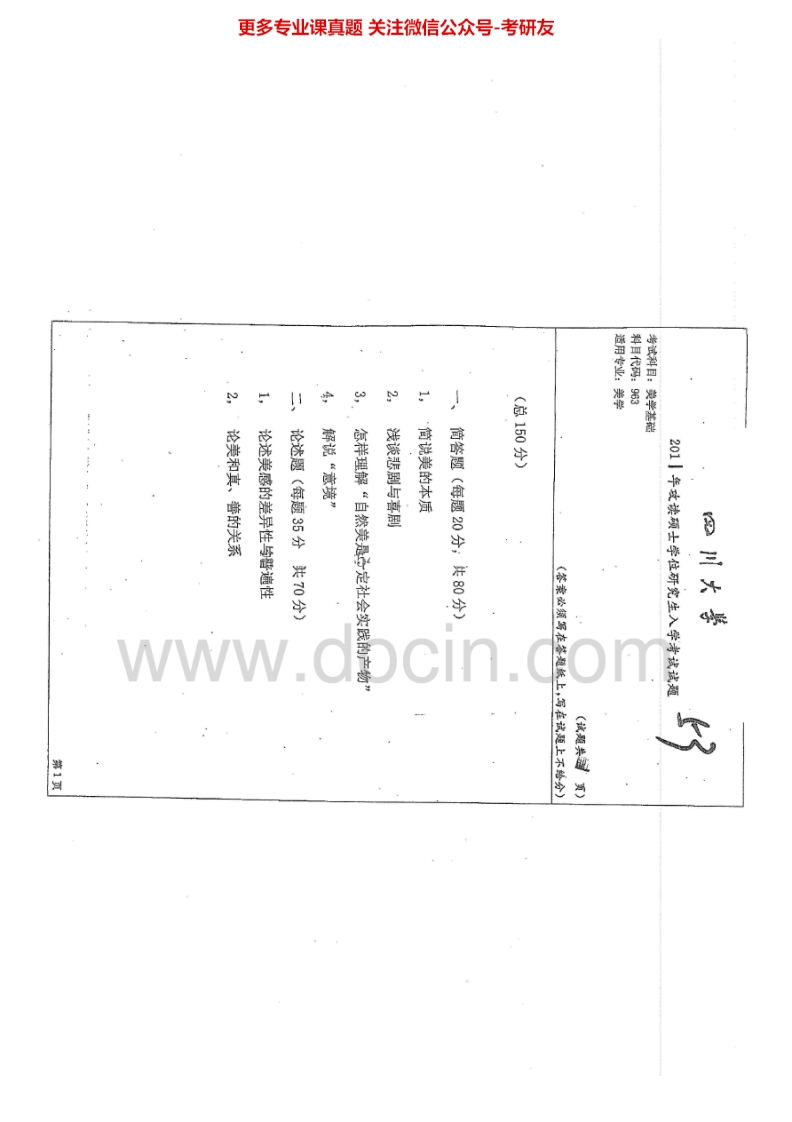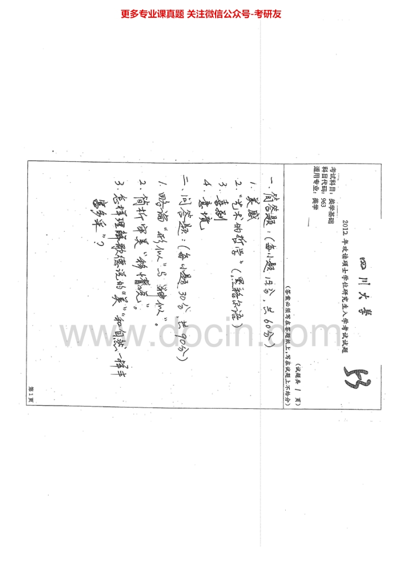四川大学963美学基础2010-2015考研真题汇编.Image.Marked猴哥6个月前发布关注私信1.35MB6页05660四川大学963美学基础2010-2015考研真题汇编.Image.Marked此内容为免费资源,请登录后查看¥0 登录查看免费资源 第1页 / 共6页 第2页 / 共6页 第3页 / 共6页 该文档为免费文档,您可直接下载完整版进行阅读 © 版权声明文章版权归作者所有,未经允许请勿转载。THE END考研专业课 喜欢就支持一下吧点赞60赞赏 分享QQ空间微博QQ好友海报分享复制链接收藏
