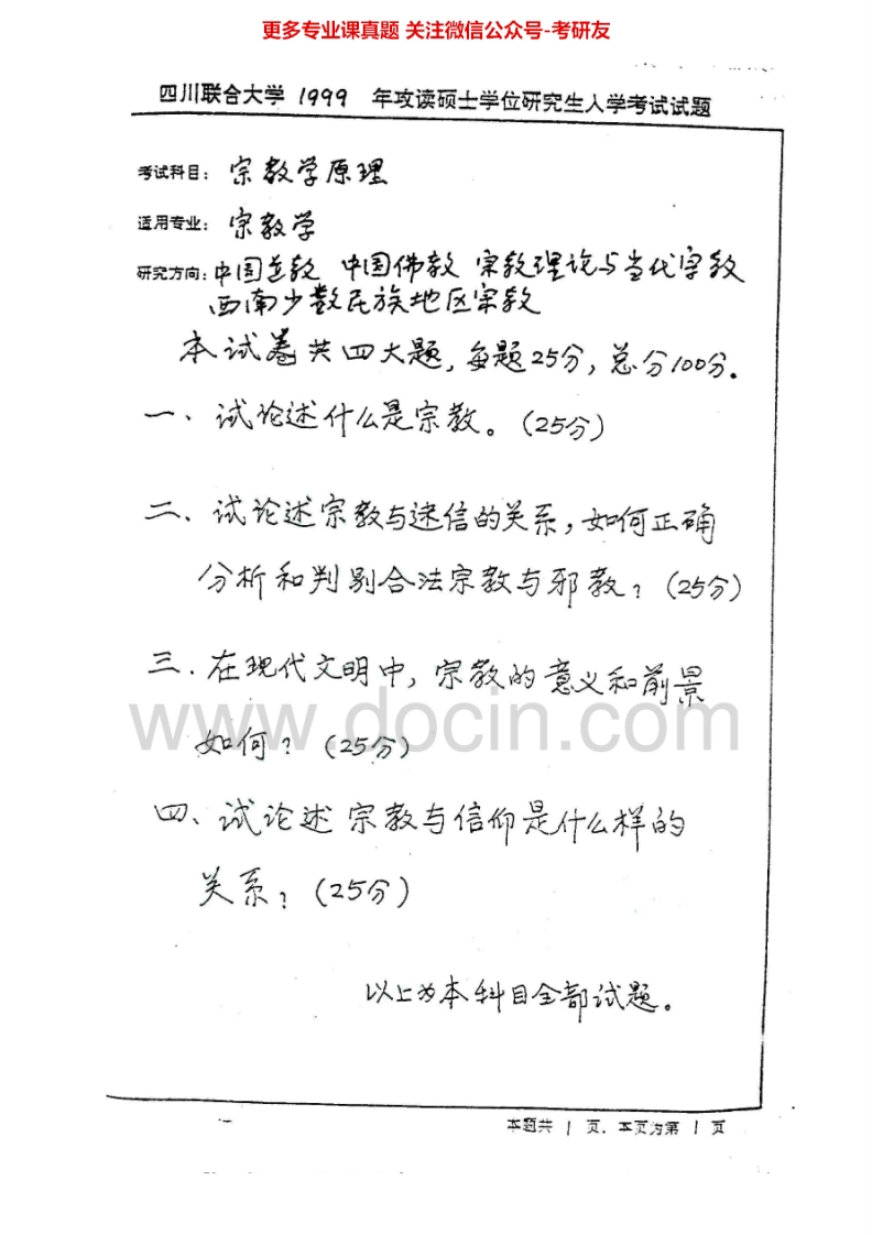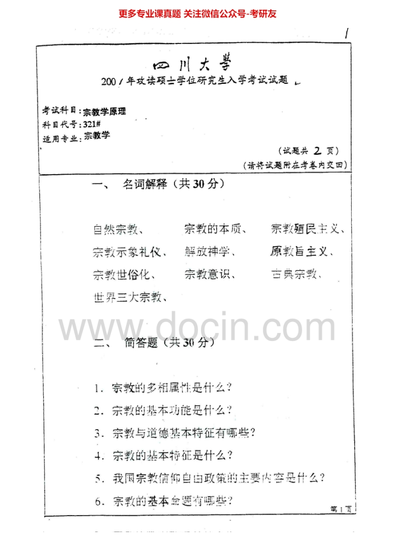 四川大学981宗教学原理1998-1999、2001-2006、2010-2015考研真题汇编.Image.Marked猴哥6个月前发布关注私信3.99MB15页08260四川大学981宗教学原理1998-1999、2001-2006、2010-2015考研真题汇编.Image.Marked此内容为免费资源,请登录后查看¥0 登录查看免费资源 第1页 / 共15页 第2页 / 共15页 第3页 / 共15页 该文档为免费文档,您可直接下载完整版进行阅读 © 版权声明文章版权归作者所有,未经允许请勿转载。THE END考研专业课 喜欢就支持一下吧点赞60赞赏 分享QQ空间微博QQ好友海报分享复制链接收藏