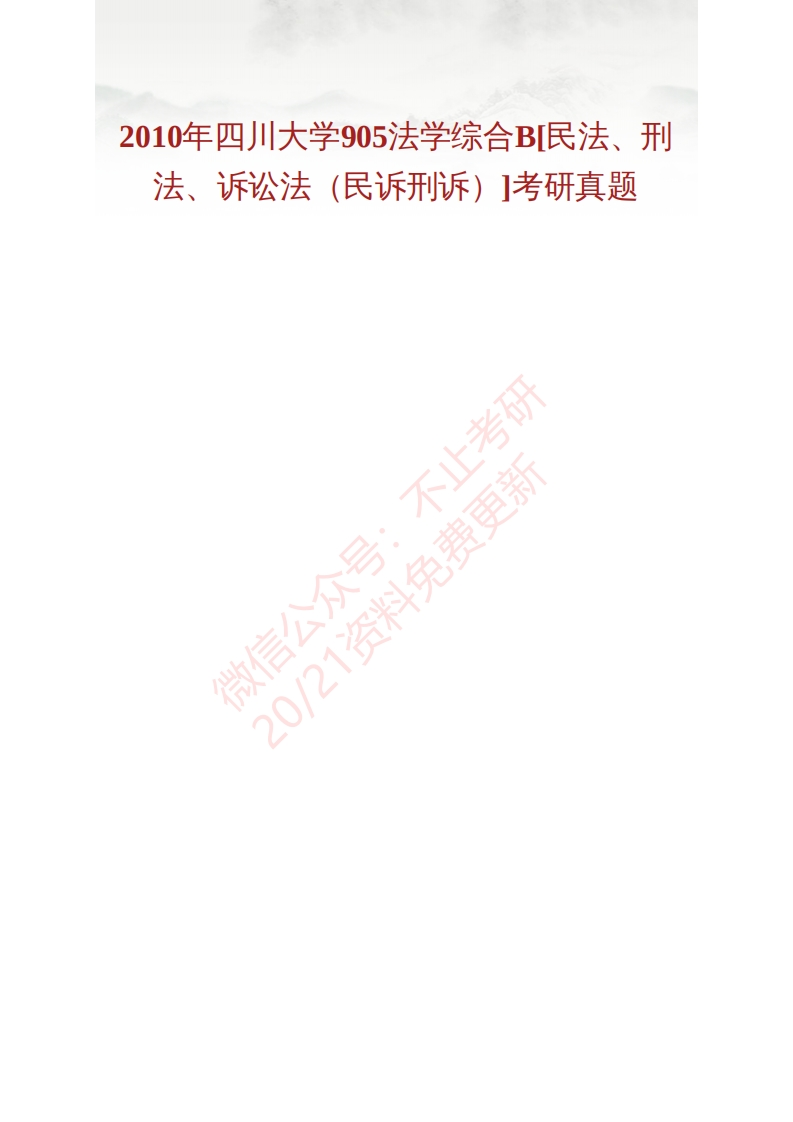 四川大学法学院905法学综合B[民法、刑法、诉讼法(民诉刑诉)]历年考研真题汇编公众号:硕识考研免费提供请勿付费购买倒卖商猴哥6个月前发布关注私信1.37MB12页07545四川大学法学院905法学综合B[民法、刑法、诉讼法(民诉刑诉)]历年考研真题汇编公众号:硕识考研免费提供请勿付费购买倒卖商此内容为免费资源,请登录后查看¥0 登录查看免费资源 第1页 / 共12页 第2页 / 共12页 第3页 / 共12页 该文档为免费文档,您可直接下载完整版进行阅读 © 版权声明文章版权归作者所有,未经允许请勿转载。THE END《四川大学》(905)法学综合B[民法、刑法、诉讼法(民诉刑诉)]考研资料考研专业课 喜欢就支持一下吧点赞45赞赏 分享QQ空间微博QQ好友海报分享复制链接收藏