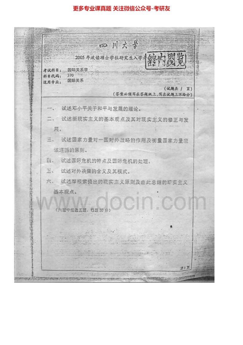 四川大学980国际关系理论2003-2005、2007、2010-2015考研真题汇编.Image.Marked猴哥6个月前发布关注私信2.71MB10页06327四川大学980国际关系理论2003-2005、2007、2010-2015考研真题汇编.Image.Marked此内容为免费资源,请登录后查看¥0 登录查看免费资源 第1页 / 共10页 第2页 / 共10页 第3页 / 共10页 该文档为免费文档,您可直接下载完整版进行阅读 © 版权声明文章版权归作者所有,未经允许请勿转载。THE END考研专业课 喜欢就支持一下吧点赞27赞赏 分享QQ空间微博QQ好友海报分享复制链接收藏