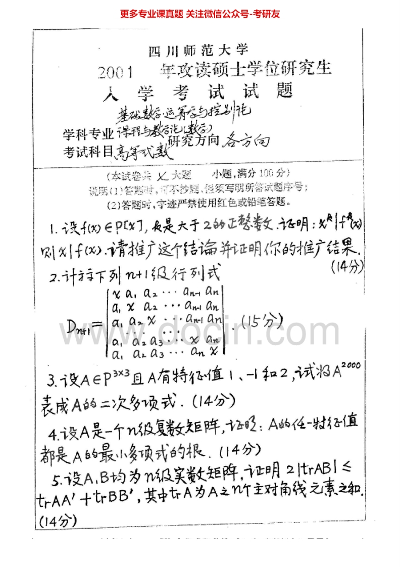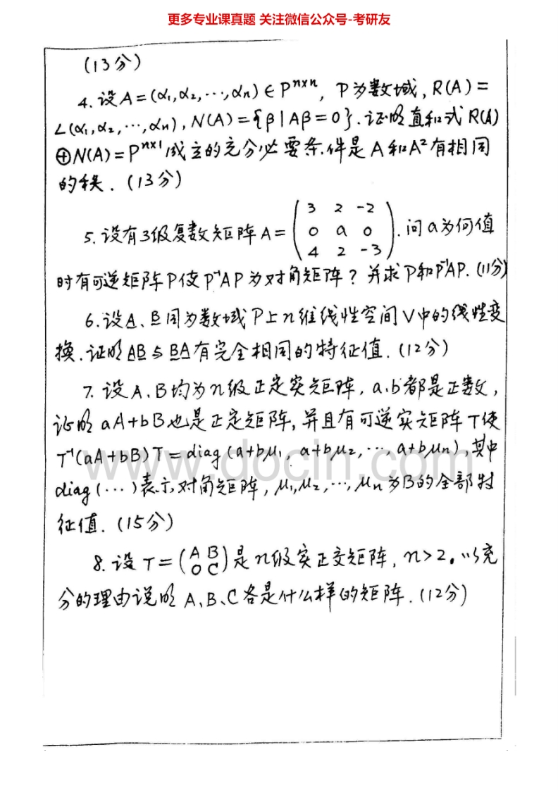 四川师范大学825高等代数2000-2006、2012-2015考研真题汇编.Image.Marked猴哥6个月前发布关注私信7.20MB24页09010四川师范大学825高等代数2000-2006、2012-2015考研真题汇编.Image.Marked此内容为免费资源,请登录后查看¥0 登录查看免费资源 第1页 / 共24页 第2页 / 共24页 第3页 / 共24页 该文档为免费文档,您可直接下载完整版进行阅读 © 版权声明文章版权归作者所有,未经允许请勿转载。THE END《四川师范大学》(825)历史学基础(自命题)考研资料考研专业课 喜欢就支持一下吧点赞10赞赏 分享QQ空间微博QQ好友海报分享复制链接收藏