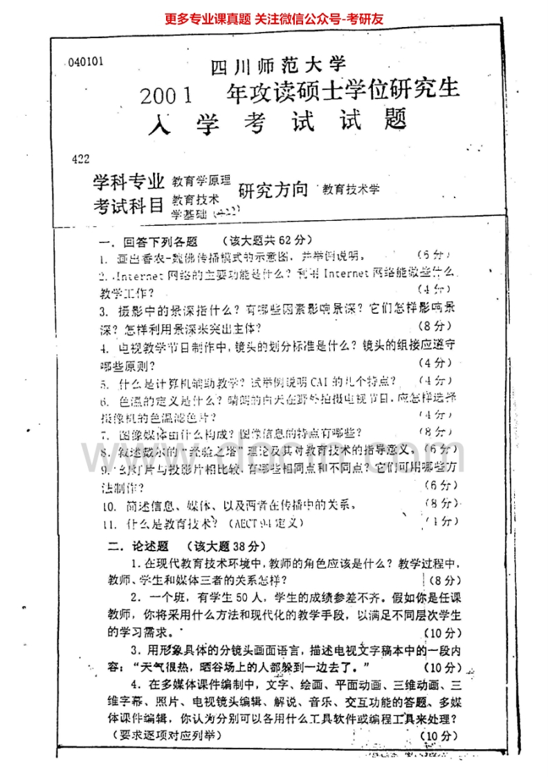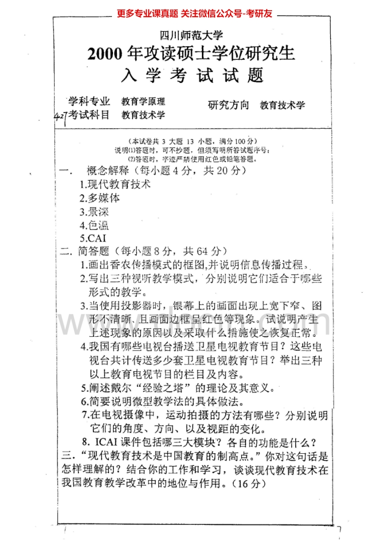 四川师范大学833教育技术学基础2000-2006、2015考研真题汇编.Image.Marked
