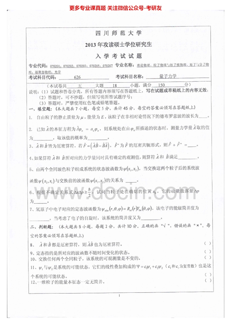 四川师范大学826量子力学2012-2015考研真题猴哥6个月前发布关注私信3.60MB8页03124四川师范大学826量子力学2012-2015考研真题此内容为免费资源,请登录后查看¥0 登录查看免费资源 第1页 / 共8页 第2页 / 共8页 第3页 / 共8页 该文档为免费文档,您可直接下载完整版进行阅读 © 版权声明文章版权归作者所有,未经允许请勿转载。THE END《四川师范大学》(826)管理学考研资料考研专业课 喜欢就支持一下吧点赞24赞赏 分享QQ空间微博QQ好友海报分享复制链接收藏