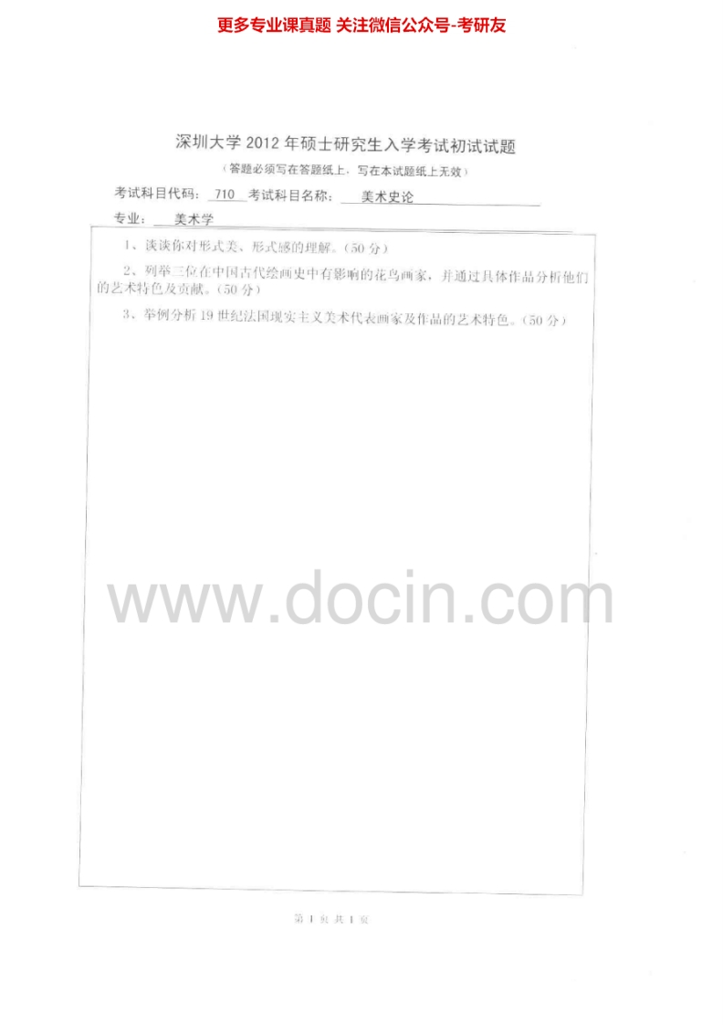 深圳大学712美术史论2008、2011-2012考研真题汇编.Image.Marked猴哥6个月前发布关注私信0.32MB3页08514深圳大学712美术史论2008、2011-2012考研真题汇编.Image.Marked此内容为免费资源,请登录后查看¥0 登录查看免费资源 第1页 / 共3页 第2页 / 共3页 第3页 / 共3页 已完成全部阅读,共3页 © 版权声明文章版权归作者所有,未经允许请勿转载。THE END《深圳大学》(712)艺术概论考研资料考研专业课 喜欢就支持一下吧点赞14赞赏 分享QQ空间微博QQ好友海报分享复制链接收藏