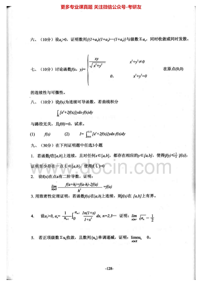 深圳大学716数学分析2004-2009、2011-2013其中2006年有答案考研真题汇编.Image.Marked猴哥6个月前发布关注私信4.73MB23页08759深圳大学716数学分析2004-2009、2011-2013其中2006年有答案考研真题汇编.Image.Marked此内容为免费资源,请登录后查看¥0 登录查看免费资源 第1页 / 共23页 第2页 / 共23页 第3页 / 共23页 该文档为免费文档,您可直接下载完整版进行阅读 © 版权声明文章版权归作者所有,未经允许请勿转载。THE END《深圳大学》(716)媒体文化考研资料考研专业课 喜欢就支持一下吧点赞59赞赏 分享QQ空间微博QQ好友海报分享复制链接收藏