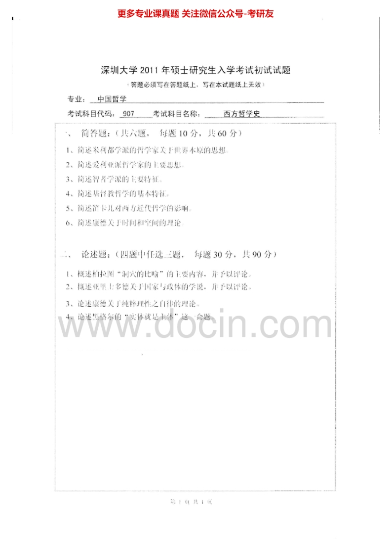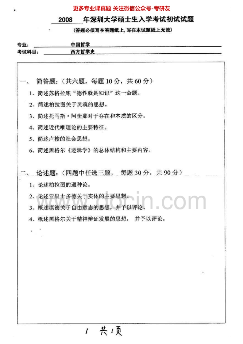 深圳大学929西方哲学史2007-2008、2011-2012考研真题汇编.Image.Marked-学习资源网 - 分享优质学习资料