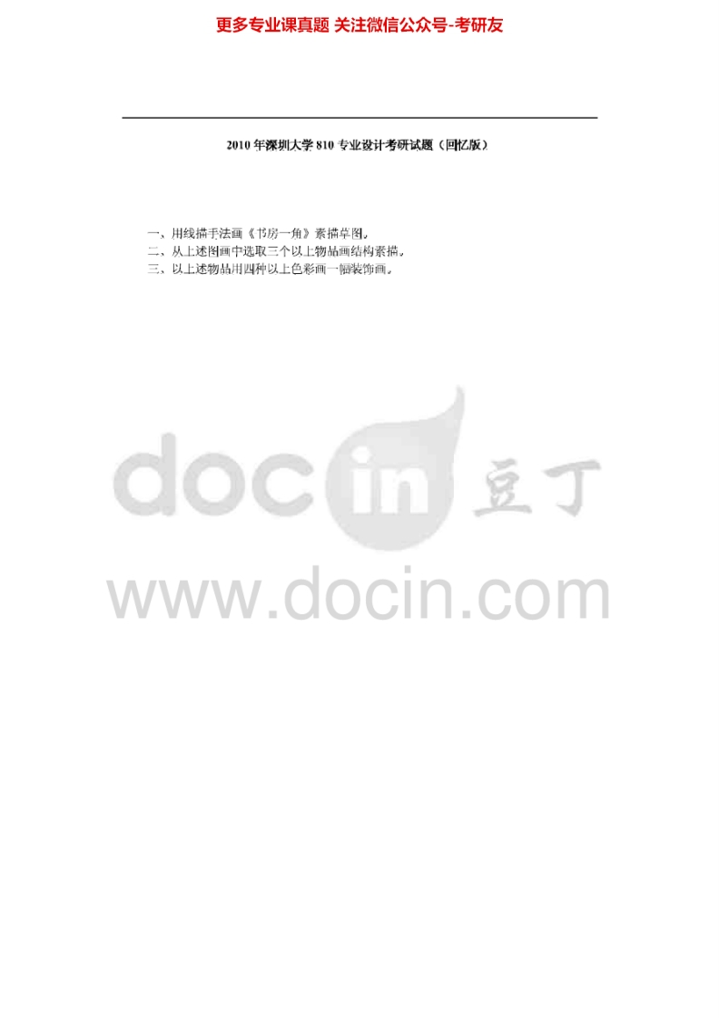 深圳大学专业设计一(设计艺术学专业)2008-2013考研真题汇编.Image.Marked猴哥6个月前发布关注私信0.91MB6页09039深圳大学专业设计一(设计艺术学专业)2008-2013考研真题汇编.Image.Marked此内容为免费资源,请登录后查看¥0 登录查看免费资源 第1页 / 共6页 第2页 / 共6页 第3页 / 共6页 该文档为免费文档,您可直接下载完整版进行阅读 © 版权声明文章版权归作者所有,未经允许请勿转载。THE END考研专业课 喜欢就支持一下吧点赞39赞赏 分享QQ空间微博QQ好友海报分享复制链接收藏