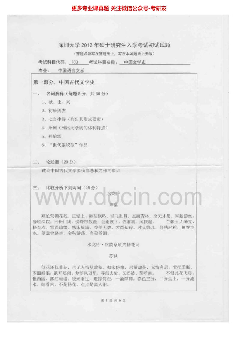 深圳大学中国文学史历年真题2009-2013考研真题汇编.Image.Marked猴哥6个月前发布关注私信2.32MB11页09957深圳大学中国文学史历年真题2009-2013考研真题汇编.Image.Marked此内容为免费资源,请登录后查看¥0 登录查看免费资源 第1页 / 共11页 第2页 / 共11页 第3页 / 共11页 该文档为免费文档,您可直接下载完整版进行阅读 © 版权声明文章版权归作者所有,未经允许请勿转载。THE END考研专业课 喜欢就支持一下吧点赞57赞赏 分享QQ空间微博QQ好友海报分享复制链接收藏