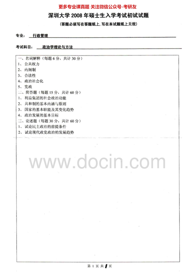 深圳大学政治学理论与方法2007-2008、2010-2013、2010回忆版考研真题汇编.Image.Marked
