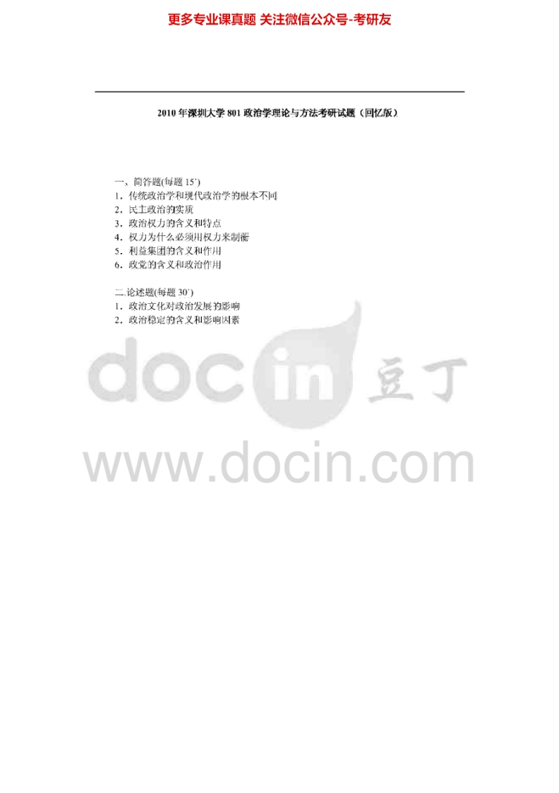 深圳大学政治学理论与方法2007-2008、2010-2013、2010回忆版考研真题汇编.Image.Marked-学习资源网 - 分享优质学习资料