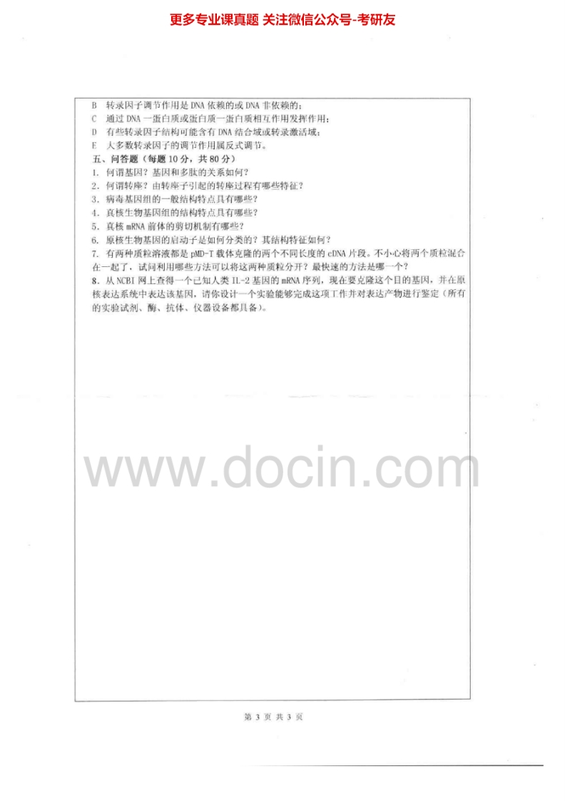 深圳大学分子生物学2002-2008、2011-2013其中2003有答案考研真题汇编.Image.Marked猴哥6个月前发布关注私信8.95MB31页08015深圳大学分子生物学2002-2008、2011-2013其中2003有答案考研真题汇编.Image.Marked此内容为免费资源,请登录后查看¥0 登录查看免费资源 第1页 / 共31页 第2页 / 共31页 第3页 / 共31页 该文档为免费文档,您可直接下载完整版进行阅读 © 版权声明文章版权归作者所有,未经允许请勿转载。THE END考研专业课 喜欢就支持一下吧点赞15赞赏 分享QQ空间微博QQ好友海报分享复制链接收藏