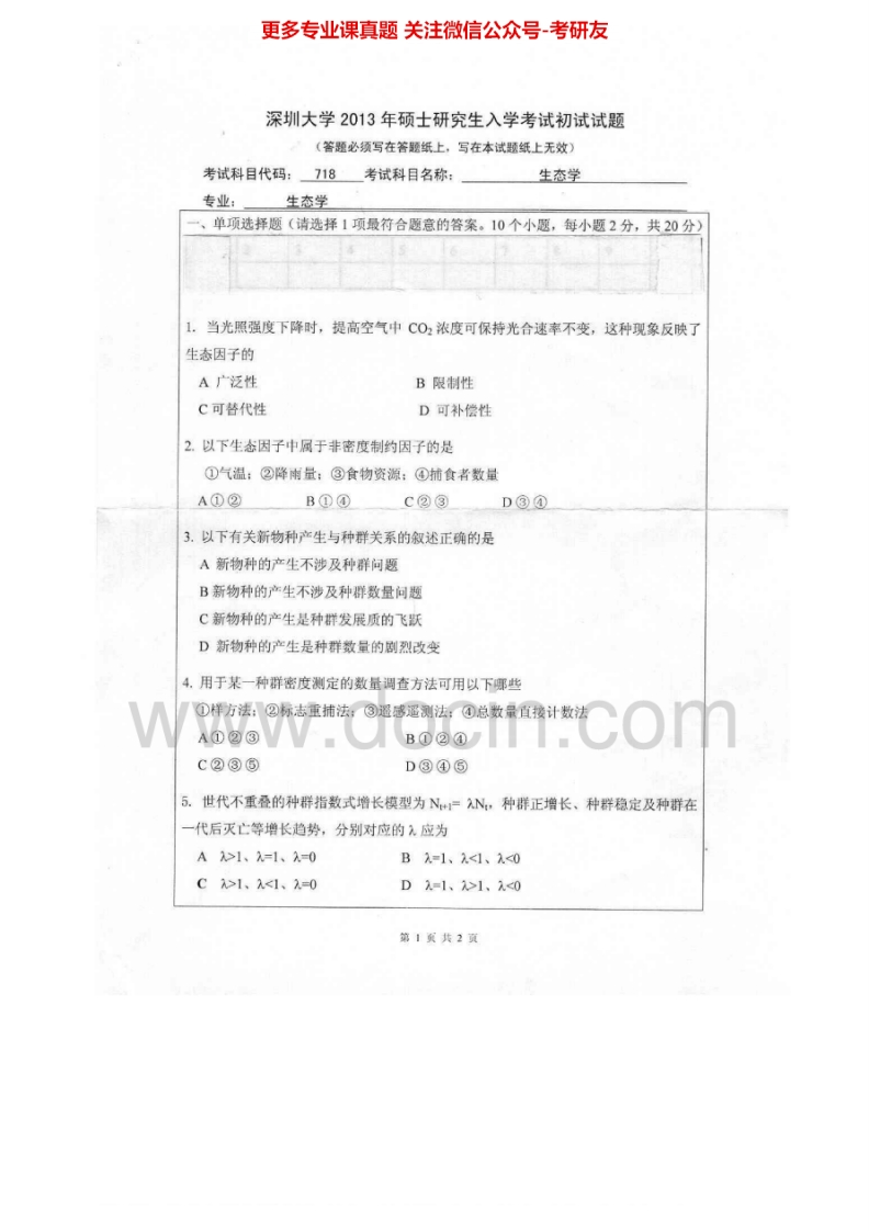 深圳大学生态学2012-2013考研真题汇编.Image.Marked猴哥6个月前发布关注私信0.71MB4页08547深圳大学生态学2012-2013考研真题汇编.Image.Marked此内容为免费资源,请登录后查看¥0 登录查看免费资源 第1页 / 共4页 第2页 / 共4页 第3页 / 共4页 该文档为免费文档,您可直接下载完整版进行阅读 © 版权声明文章版权归作者所有,未经允许请勿转载。THE END考研专业课 喜欢就支持一下吧点赞47赞赏 分享QQ空间微博QQ好友海报分享复制链接收藏