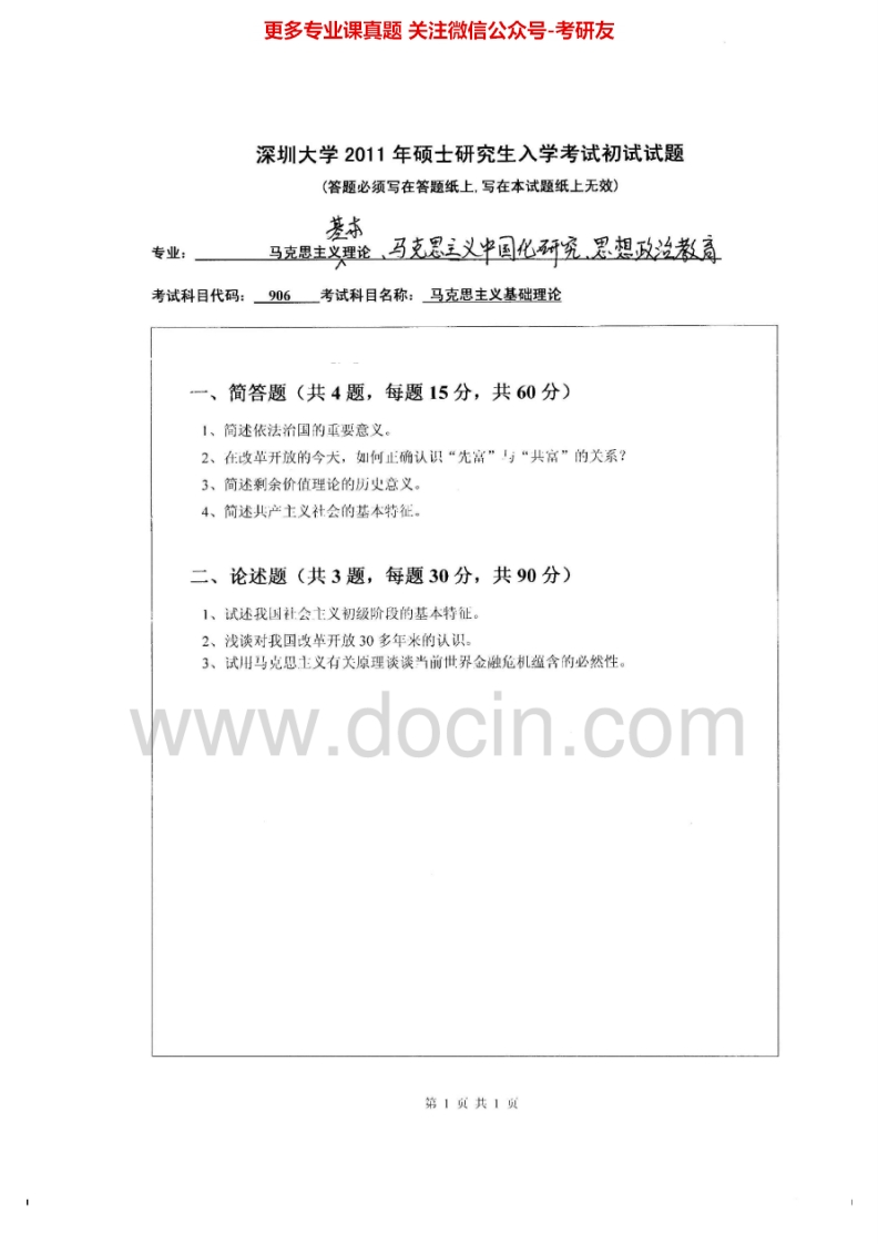深圳大学马克思主义基础理论2007-2008、2011-2013考研真题汇编.Image.Marked猴哥6个月前发布关注私信1.16MB5页09634深圳大学马克思主义基础理论2007-2008、2011-2013考研真题汇编.Image.Marked此内容为免费资源,请登录后查看¥0 登录查看免费资源 第1页 / 共5页 第2页 / 共5页 第3页 / 共5页 该文档为免费文档,您可直接下载完整版进行阅读 © 版权声明文章版权归作者所有,未经允许请勿转载。THE END考研专业课 喜欢就支持一下吧点赞34赞赏 分享QQ空间微博QQ好友海报分享复制链接收藏