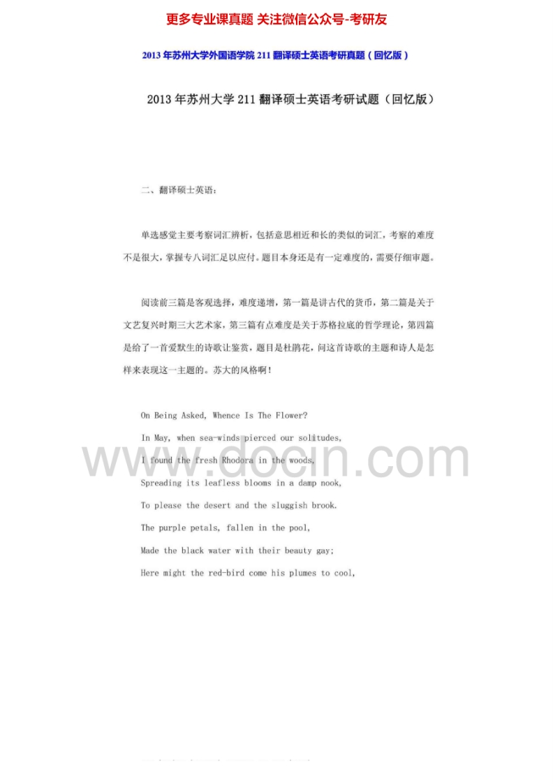 苏州大学211翻译硕士英语[专业硕士]2010-2014考研真题汇编.Image.Marked猴哥6个月前发布关注私信8.81MB37页09037苏州大学211翻译硕士英语[专业硕士]2010-2014考研真题汇编.Image.Marked此内容为免费资源,请登录后查看¥0 登录查看免费资源 第1页 / 共37页 第2页 / 共37页 第3页 / 共37页 该文档为免费文档,您可直接下载完整版进行阅读 © 版权声明文章版权归作者所有,未经允许请勿转载。THE END考研专业课 喜欢就支持一下吧点赞37赞赏 分享QQ空间微博QQ好友海报分享复制链接收藏