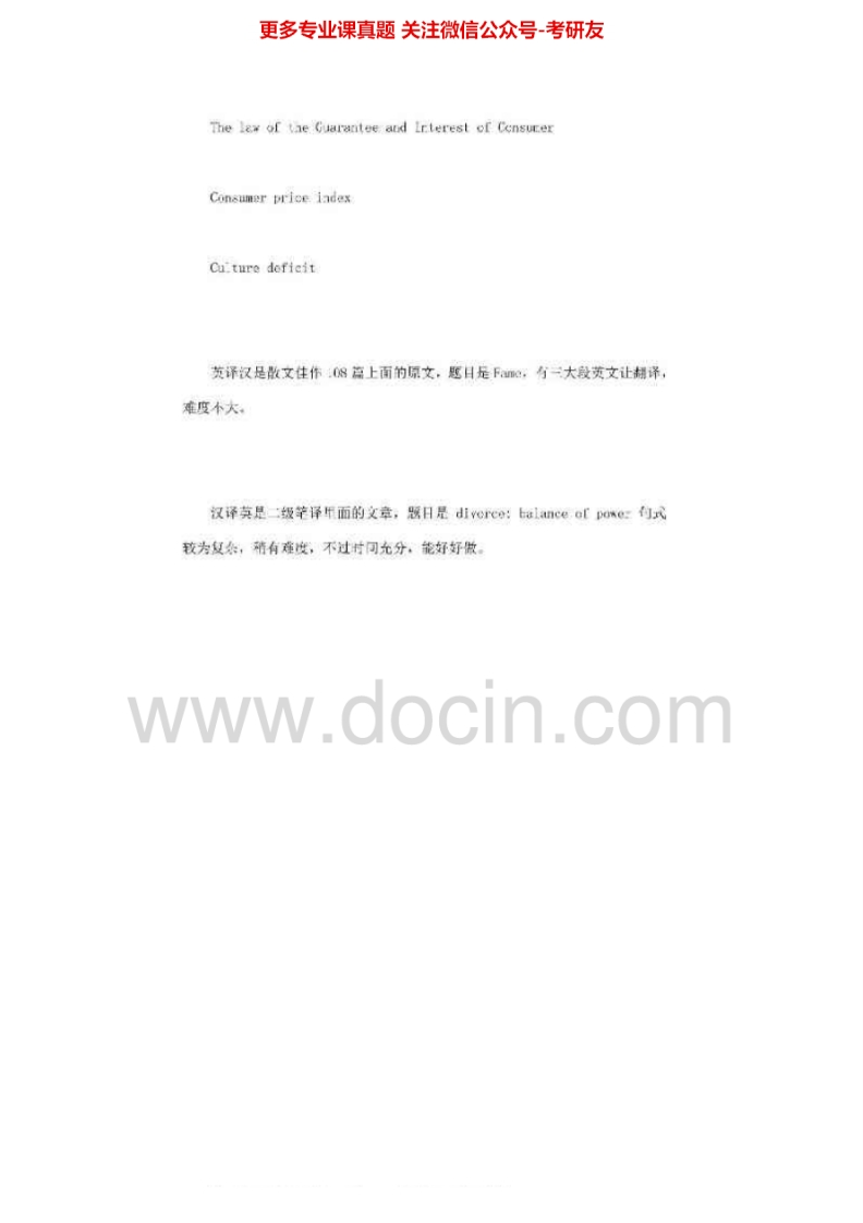 苏州大学357英语翻译基础[专业硕士]2010-2014考研真题汇编.Image.Marked猴哥6个月前发布关注私信1.92MB9页08160苏州大学357英语翻译基础[专业硕士]2010-2014考研真题汇编.Image.Marked此内容为免费资源,请登录后查看¥0 登录查看免费资源 第1页 / 共9页 第2页 / 共9页 第3页 / 共9页 该文档为免费文档,您可直接下载完整版进行阅读 © 版权声明文章版权归作者所有,未经允许请勿转载。THE END《苏州大学》(357)英语翻译基础考研资料考研专业课 喜欢就支持一下吧点赞60赞赏 分享QQ空间微博QQ好友海报分享复制链接收藏