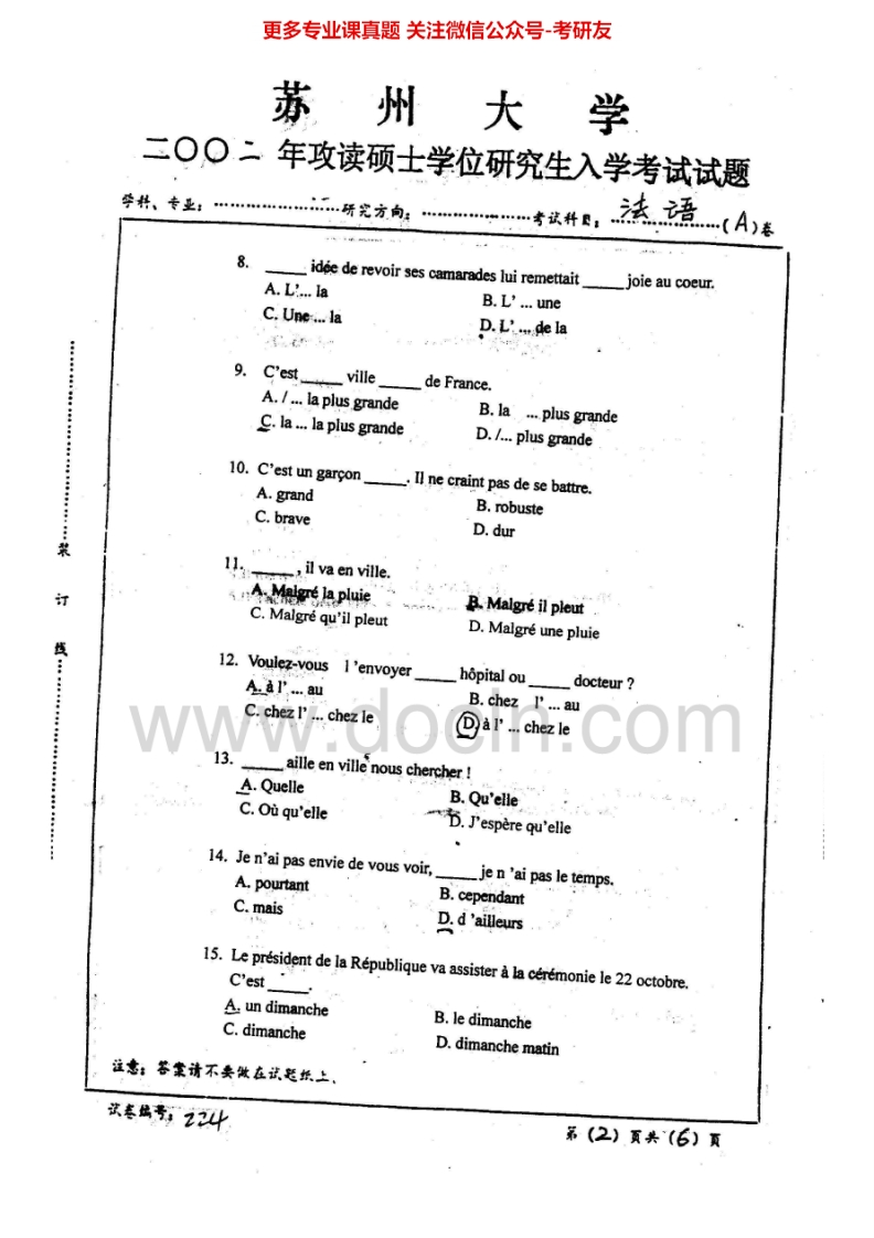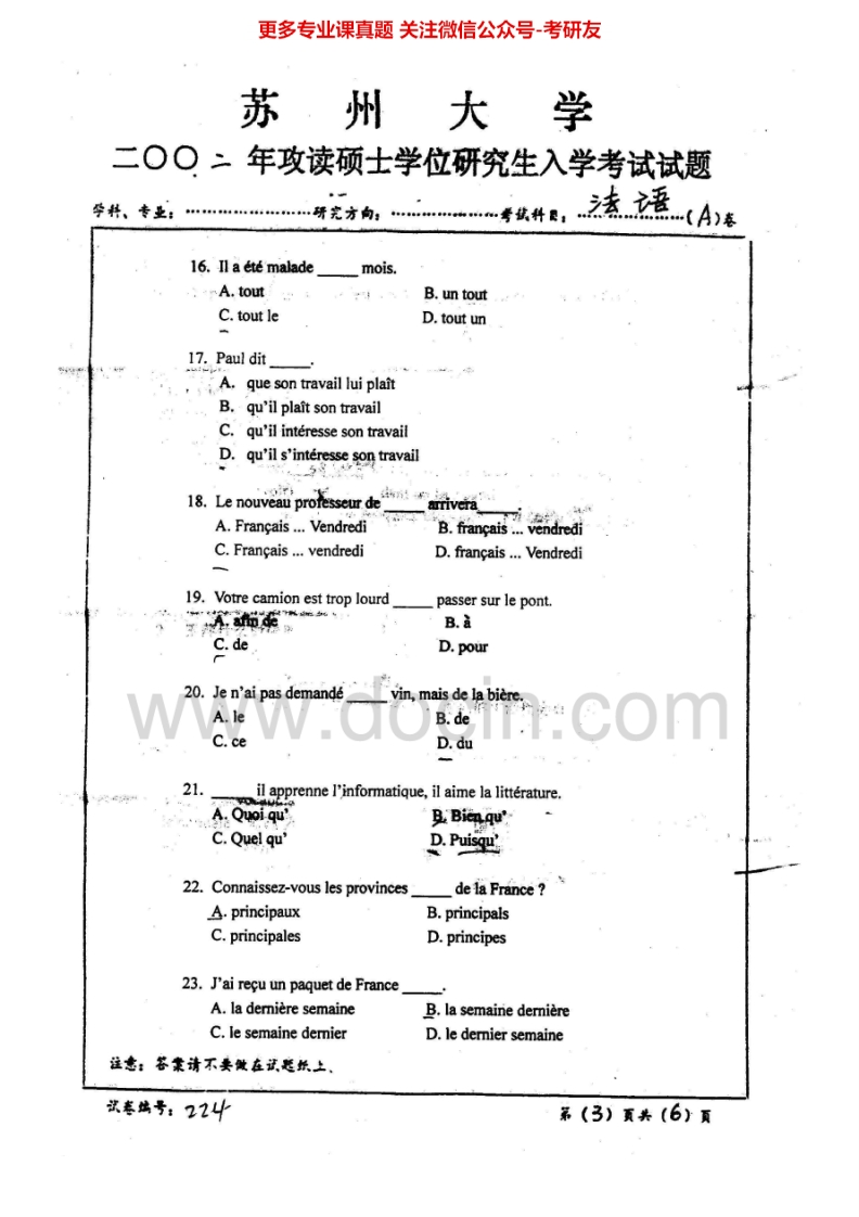 苏州大学244法语2001-2002、2004-2012、2014考研真题汇编.Image.Marked猴哥6个月前发布关注私信23.01MB98页05210苏州大学244法语2001-2002、2004-2012、2014考研真题汇编.Image.Marked此内容为免费资源,请登录后查看¥0 登录查看免费资源 第1页 / 共98页 第2页 / 共98页 第3页 / 共98页 该文档为免费文档,您可直接下载完整版进行阅读 © 版权声明文章版权归作者所有,未经允许请勿转载。THE END考研专业课 喜欢就支持一下吧点赞10赞赏 分享QQ空间微博QQ好友海报分享复制链接收藏