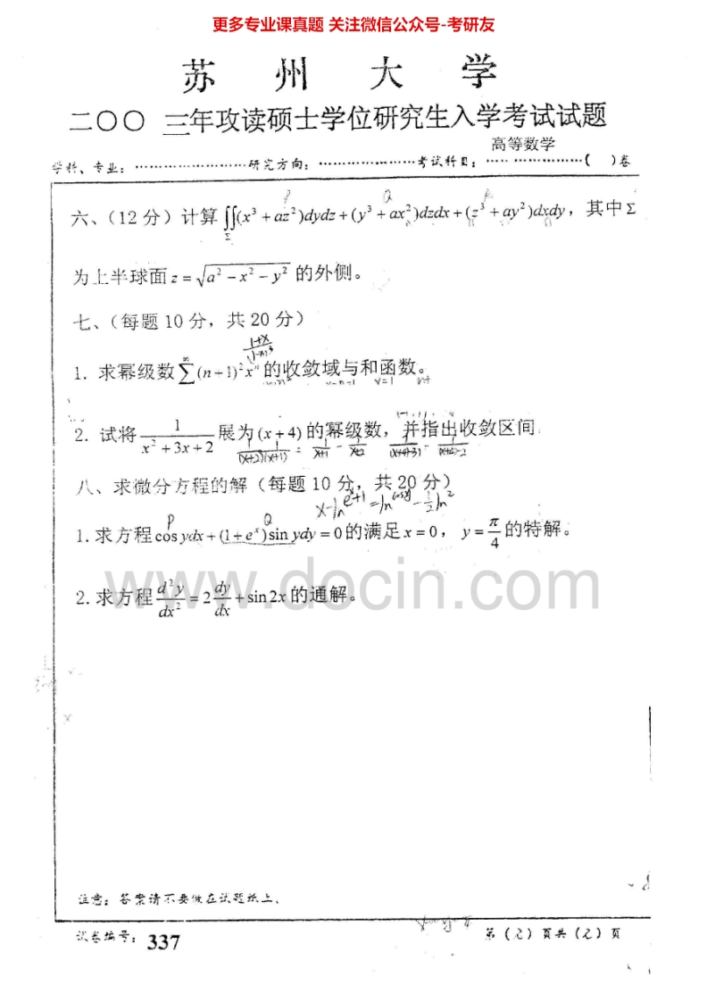 苏州大学619高等数学(F)2003-2007、2009-2012考研真题汇编.Image.Marked猴哥6个月前发布关注私信3.46MB14页06136苏州大学619高等数学(F)2003-2007、2009-2012考研真题汇编.Image.Marked此内容为免费资源,请登录后查看¥0 登录查看免费资源 第1页 / 共14页 第2页 / 共14页 第3页 / 共14页 该文档为免费文档,您可直接下载完整版进行阅读 © 版权声明文章版权归作者所有,未经允许请勿转载。THE END《苏州大学》(619)高等数学考研资料考研专业课 喜欢就支持一下吧点赞36赞赏 分享QQ空间微博QQ好友海报分享复制链接收藏