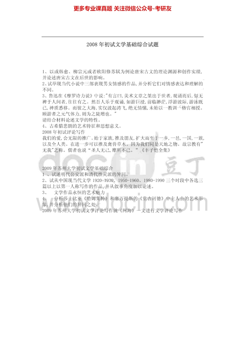 苏州大学657文学基础综合2007-2014考研真题汇编.Image.Marked猴哥6个月前发布关注私信1.77MB8页08116苏州大学657文学基础综合2007-2014考研真题汇编.Image.Marked此内容为免费资源,请登录后查看¥0 登录查看免费资源 第1页 / 共8页 第2页 / 共8页 第3页 / 共8页 该文档为免费文档,您可直接下载完整版进行阅读 © 版权声明文章版权归作者所有,未经允许请勿转载。THE END《苏州大学》(657)文学基础综合考研资料考研专业课 喜欢就支持一下吧点赞16赞赏 分享QQ空间微博QQ好友海报分享复制链接收藏
