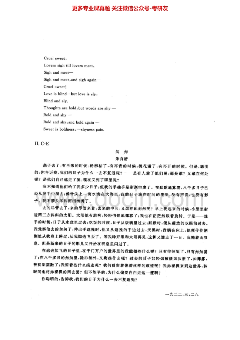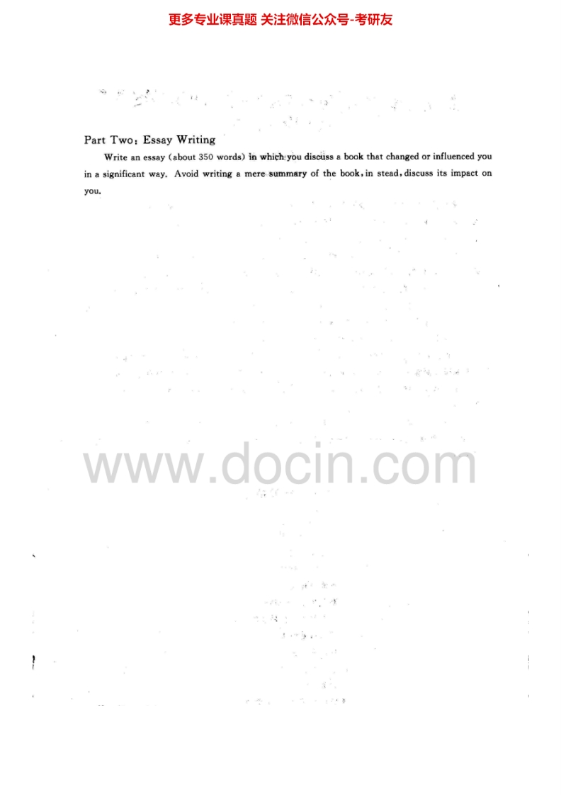 苏州大学828翻译与写作1997、2003-2009、2011、2014其中1997有答案历年考研真题.Image.Marked猴哥6个月前发布关注私信7.12MB24页09439苏州大学828翻译与写作1997、2003-2009、2011、2014其中1997有答案历年考研真题.Image.Marked此内容为免费资源,请登录后查看¥0 登录查看免费资源 第1页 / 共24页 第2页 / 共24页 第3页 / 共24页 该文档为免费文档,您可直接下载完整版进行阅读 © 版权声明文章版权归作者所有,未经允许请勿转载。THE END《苏州大学》(828)外国语言文学基础知识与汉语写作考研资料考研专业课 喜欢就支持一下吧点赞39赞赏 分享QQ空间微博QQ好友海报分享复制链接收藏