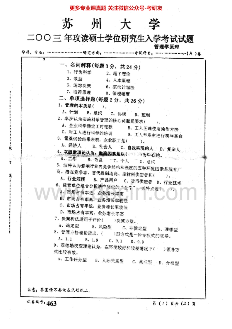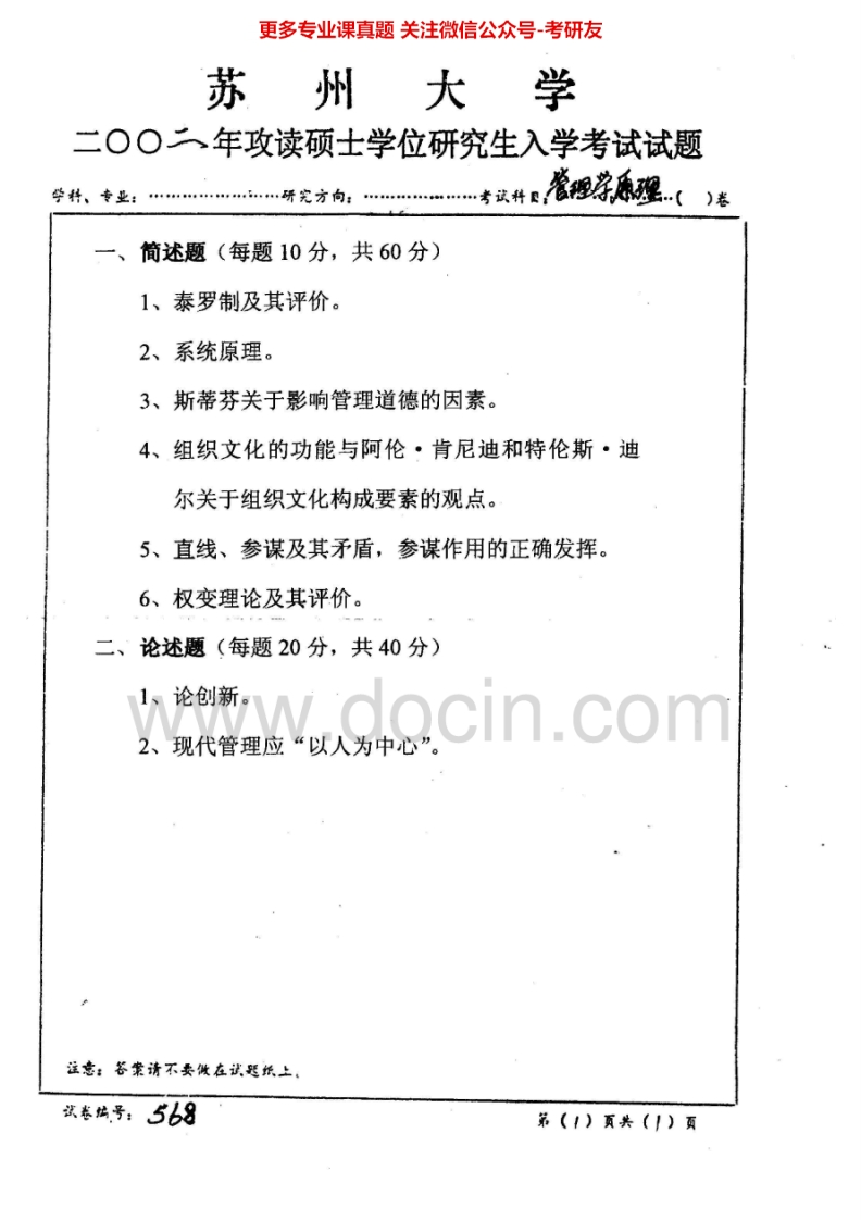 苏州大学825管理学原理(旅游管理)2002-2006、2010-2014考研真题汇编.Image.Marked猴哥6个月前发布关注私信4.40MB16页05842苏州大学825管理学原理(旅游管理)2002-2006、2010-2014考研真题汇编.Image.Marked此内容为免费资源,请登录后查看¥0 登录查看免费资源 第1页 / 共16页 第2页 / 共16页 第3页 / 共16页 该文档为免费文档,您可直接下载完整版进行阅读 © 版权声明文章版权归作者所有,未经允许请勿转载。THE END考研专业课 喜欢就支持一下吧点赞42赞赏 分享QQ空间微博QQ好友海报分享复制链接收藏