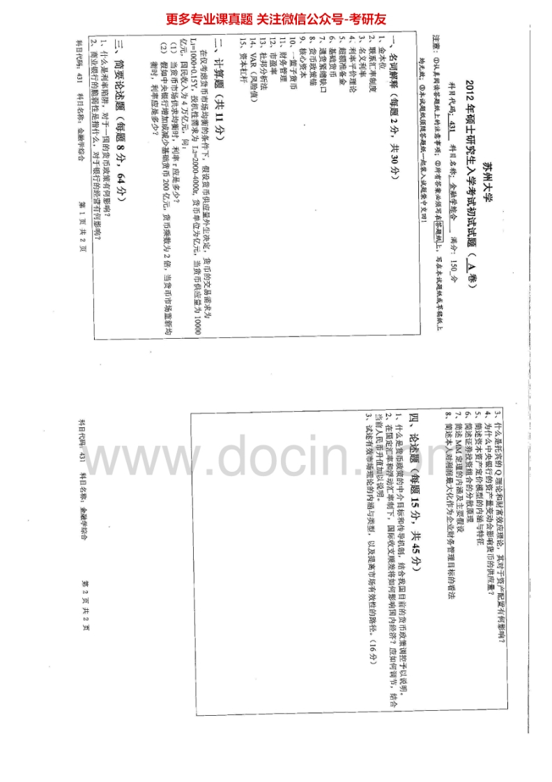 苏州大学847金融学概论2013-2014、回忆版2015考研真题汇编.Image.Marked猴哥6个月前发布关注私信1.07MB5页06634苏州大学847金融学概论2013-2014、回忆版2015考研真题汇编.Image.Marked此内容为免费资源,请登录后查看¥0 登录查看免费资源 第1页 / 共5页 第2页 / 共5页 第3页 / 共5页 该文档为免费文档,您可直接下载完整版进行阅读 © 版权声明文章版权归作者所有,未经允许请勿转载。THE END考研专业课 喜欢就支持一下吧点赞34赞赏 分享QQ空间微博QQ好友海报分享复制链接收藏