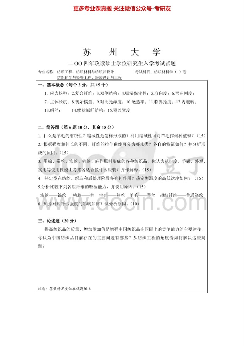 苏州大学844纺织材料学1999、2004-2007、2009-2014考研真题汇编猴哥6个月前发布关注私信3.09MB14页09212苏州大学844纺织材料学1999、2004-2007、2009-2014考研真题汇编此内容为免费资源,请登录后查看¥0 登录查看免费资源 第1页 / 共14页 第2页 / 共14页 第3页 / 共14页 该文档为免费文档,您可直接下载完整版进行阅读 © 版权声明文章版权归作者所有,未经允许请勿转载。THE END《苏州大学》(844)纺织材料学考研资料考研专业课 喜欢就支持一下吧点赞12赞赏 分享QQ空间微博QQ好友海报分享复制链接收藏