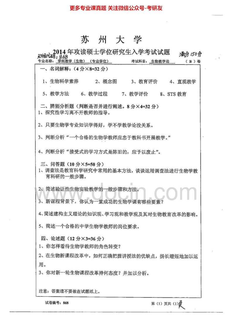 苏州大学868生物教学论2011、2014历年考研真题.Image.Marked猴哥6个月前发布关注私信0.54MB2页05063苏州大学868生物教学论2011、2014历年考研真题.Image.Marked此内容为免费资源,请登录后查看¥0 登录查看免费资源 第1页 / 共2页 第2页 / 共2页 已完成全部阅读,共2页 © 版权声明文章版权归作者所有,未经允许请勿转载。THE END考研专业课 喜欢就支持一下吧点赞63赞赏 分享QQ空间微博QQ好友海报分享复制链接收藏