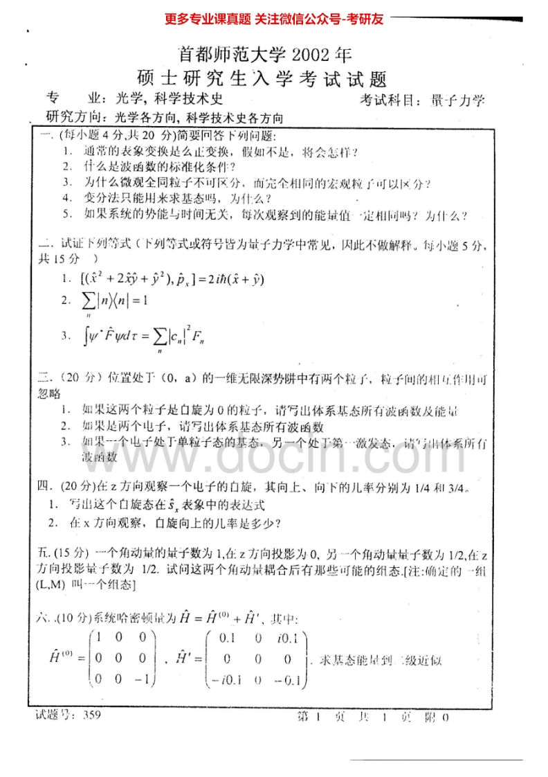 首都师范大学705量子力学2001-2011考研真题汇编.Image.Marked猴哥6个月前发布关注私信3.12MB13页04847首都师范大学705量子力学2001-2011考研真题汇编.Image.Marked此内容为免费资源,请登录后查看¥0 登录查看免费资源 第1页 / 共13页 第2页 / 共13页 第3页 / 共13页 该文档为免费文档,您可直接下载完整版进行阅读 © 版权声明文章版权归作者所有,未经允许请勿转载。THE END《首都师范大学》(705)量子力学考研资料考研专业课 喜欢就支持一下吧点赞47赞赏 分享QQ空间微博QQ好友海报分享复制链接收藏