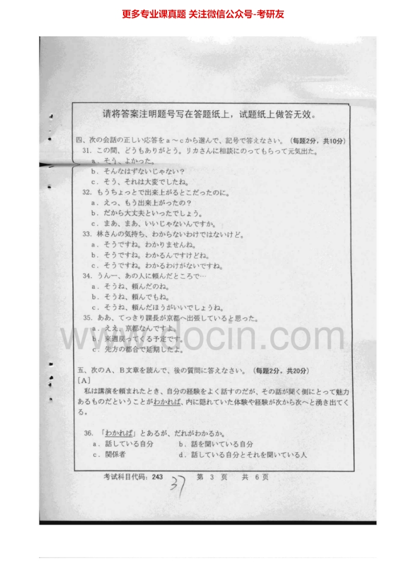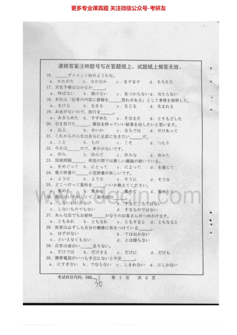 首都师范大学243二外日语2002-2013考研真题汇编.Image.Marked猴哥6个月前发布关注私信37.24MB87页03440首都师范大学243二外日语2002-2013考研真题汇编.Image.Marked此内容为免费资源,请登录后查看¥0 登录查看免费资源 第1页 / 共87页 第2页 / 共87页 第3页 / 共87页 该文档为免费文档,您可直接下载完整版进行阅读 © 版权声明文章版权归作者所有,未经允许请勿转载。THE END考研专业课 喜欢就支持一下吧点赞40赞赏 分享QQ空间微博QQ好友海报分享复制链接收藏