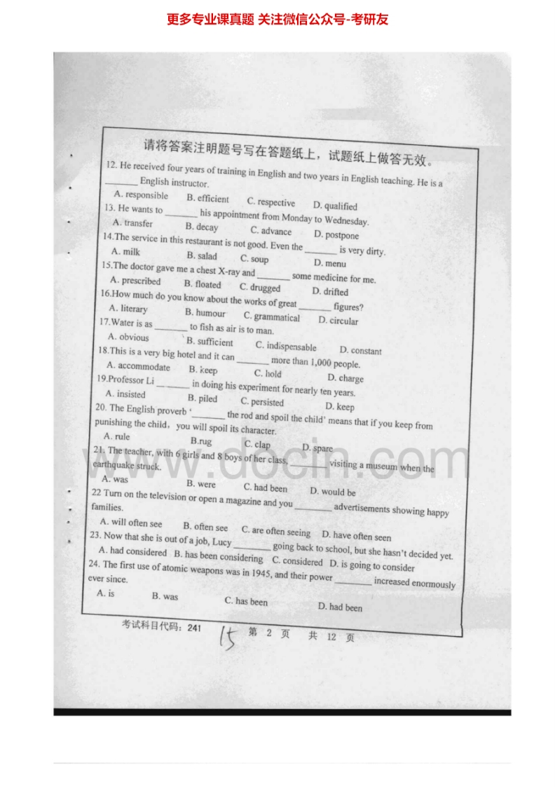 首都师范大学241二外英语2001-2004、2006-2007、2009-2010、2012-2013考研真题汇编.Image.Marked猴哥6个月前发布关注私信39.98MB106页06949首都师范大学241二外英语2001-2004、2006-2007、2009-2010、2012-2013考研真题汇编.Image.Marked此内容为免费资源,请登录后查看¥0 登录查看免费资源 第1页 / 共106页 第2页 / 共106页 第3页 / 共106页 该文档为免费文档,您可直接下载完整版进行阅读 © 版权声明文章版权归作者所有,未经允许请勿转载。THE END考研专业课 喜欢就支持一下吧点赞49赞赏 分享QQ空间微博QQ好友海报分享复制链接收藏