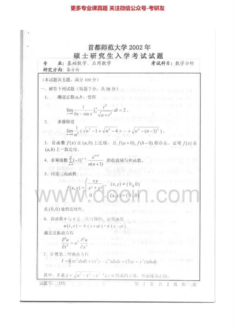 首都师范大学733数学分析2001-2015考研真题汇编.Image.Marked猴哥6个月前发布关注私信7.09MB32页04225首都师范大学733数学分析2001-2015考研真题汇编.Image.Marked此内容为免费资源,请登录后查看¥0 登录查看免费资源 第1页 / 共32页 第2页 / 共32页 第3页 / 共32页 该文档为免费文档,您可直接下载完整版进行阅读 © 版权声明文章版权归作者所有,未经允许请勿转载。THE END《首都师范大学》(733)数学分析考研资料考研专业课 喜欢就支持一下吧点赞25赞赏 分享QQ空间微博QQ好友海报分享复制链接收藏