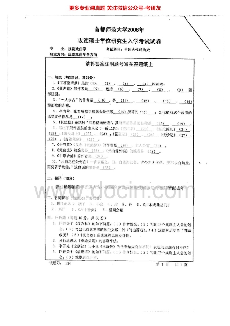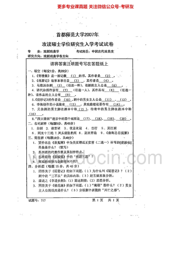 首都师范大学905中国古代戏曲史2005-2008、2011考研真题汇编.Image.Marked猴哥6个月前发布关注私信1.36MB5页05411首都师范大学905中国古代戏曲史2005-2008、2011考研真题汇编.Image.Marked此内容为免费资源,请登录后查看¥0 登录查看免费资源 第1页 / 共5页 第2页 / 共5页 第3页 / 共5页 该文档为免费文档,您可直接下载完整版进行阅读 © 版权声明文章版权归作者所有,未经允许请勿转载。THE END考研专业课 喜欢就支持一下吧点赞11赞赏 分享QQ空间微博QQ好友海报分享复制链接收藏