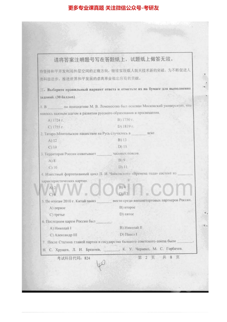 首都师范大学824俄语综合知识2010、2012-2013考研真题汇编.Image.Marked猴哥6个月前发布关注私信9.05MB22页04229首都师范大学824俄语综合知识2010、2012-2013考研真题汇编.Image.Marked此内容为免费资源,请登录后查看¥0 登录查看免费资源 第1页 / 共22页 第2页 / 共22页 第3页 / 共22页 该文档为免费文档,您可直接下载完整版进行阅读 © 版权声明文章版权归作者所有,未经允许请勿转载。THE END《首都师范大学》(824)俄语综合知识考研资料考研专业课 喜欢就支持一下吧点赞29赞赏 分享QQ空间微博QQ好友海报分享复制链接收藏