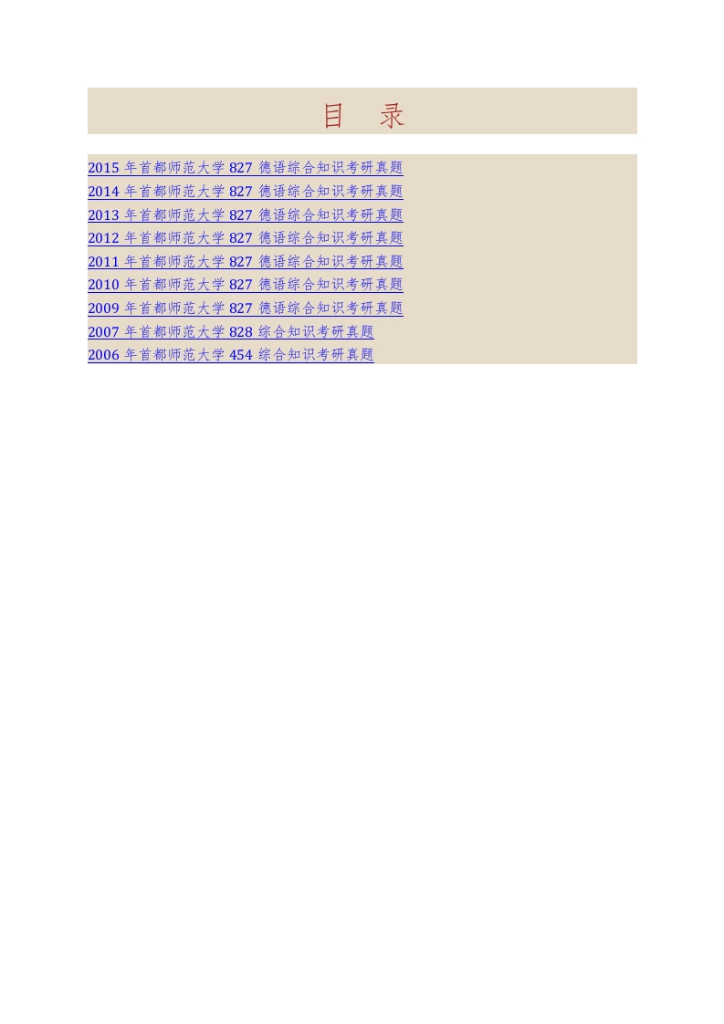 首都师范大学外国语学院827德语综合知识历年考研真题汇编猴哥6个月前发布关注私信4.47MB73页07516首都师范大学外国语学院827德语综合知识历年考研真题汇编此内容为免费资源,请登录后查看¥0 登录查看免费资源 第1页 / 共73页 第2页 / 共73页 第3页 / 共73页 该文档为免费文档,您可直接下载完整版进行阅读 © 版权声明文章版权归作者所有,未经允许请勿转载。THE END《首都师范大学》(827)德语综合知识考研资料考研专业课 喜欢就支持一下吧点赞16赞赏 分享QQ空间微博QQ好友海报分享复制链接收藏