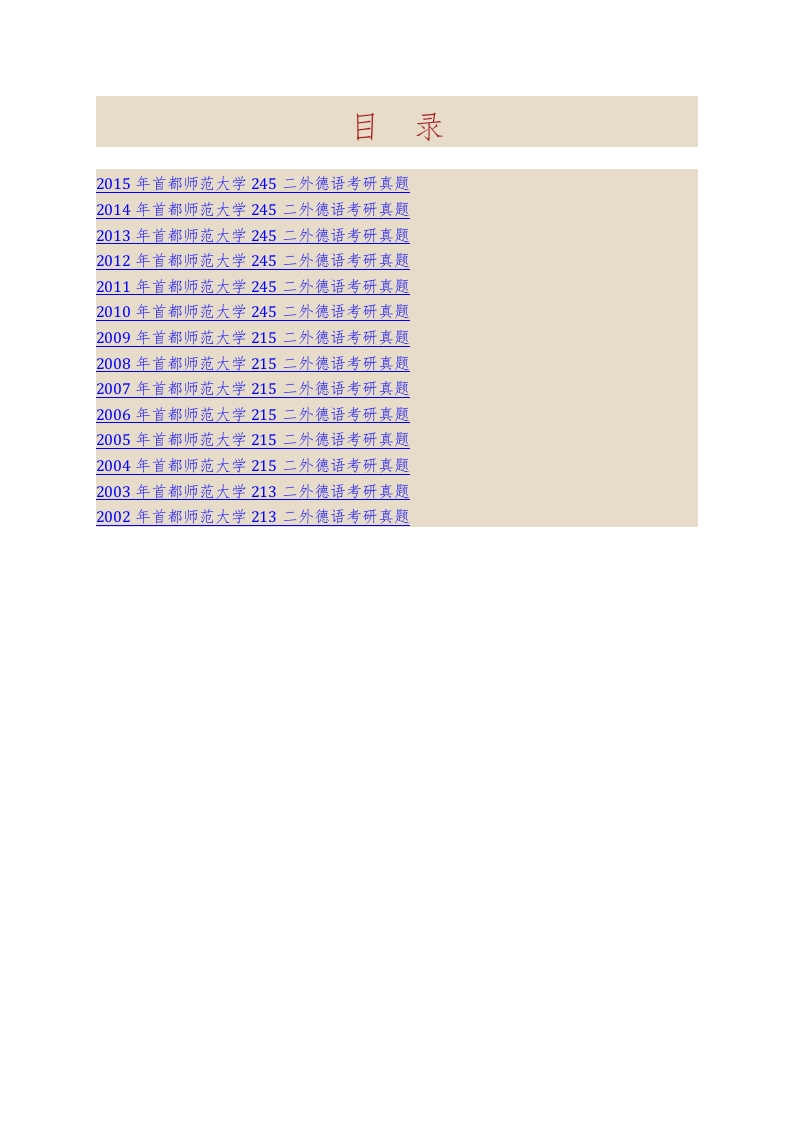 首都师范大学外国语学院245二外德语历年考研真题汇编猴哥6个月前发布关注私信9.24MB118页08238首都师范大学外国语学院245二外德语历年考研真题汇编此内容为免费资源,请登录后查看¥0 登录查看免费资源 第1页 / 共118页 第2页 / 共118页 第3页 / 共118页 该文档为免费文档,您可直接下载完整版进行阅读 © 版权声明文章版权归作者所有,未经允许请勿转载。THE END考研专业课 喜欢就支持一下吧点赞38赞赏 分享QQ空间微博QQ好友海报分享复制链接收藏