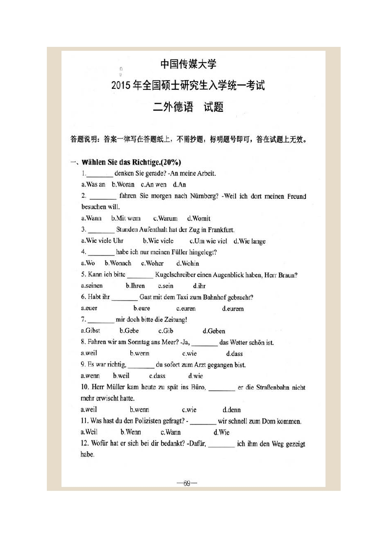 中国传媒大学246二外德语历年考研真题汇编-学习资源网 - 分享优质学习资料
