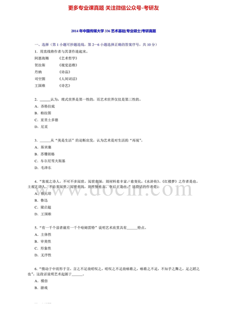 中国传媒大学336艺术基础2010-2015其中2010-2014有答案考研真题汇编.Image.Marked猴哥6个月前发布关注私信13.65MB46页05849中国传媒大学336艺术基础2010-2015其中2010-2014有答案考研真题汇编.Image.Marked此内容为免费资源,请登录后查看¥0 登录查看免费资源 第1页 / 共46页 第2页 / 共46页 第3页 / 共46页 该文档为免费文档,您可直接下载完整版进行阅读 © 版权声明文章版权归作者所有,未经允许请勿转载。THE END考研专业课 喜欢就支持一下吧点赞49赞赏 分享QQ空间微博QQ好友海报分享复制链接收藏