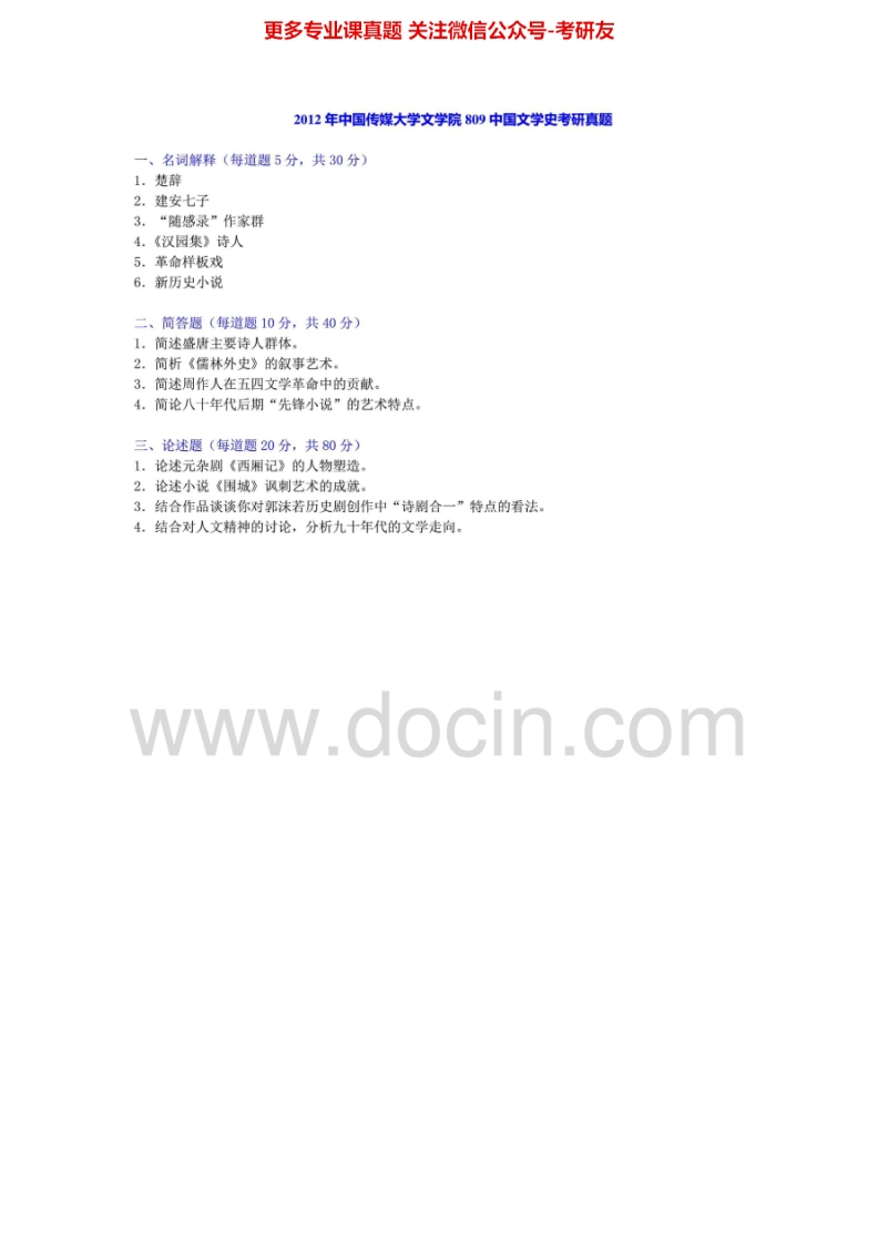 中国传媒大学809中国文学史2007-2014其中2010-2012有答案考研真题汇编.Image.Marked猴哥6个月前发布关注私信13.18MB38页08415中国传媒大学809中国文学史2007-2014其中2010-2012有答案考研真题汇编.Image.Marked此内容为免费资源,请登录后查看¥0 登录查看免费资源 第1页 / 共38页 第2页 / 共38页 第3页 / 共38页 该文档为免费文档,您可直接下载完整版进行阅读 © 版权声明文章版权归作者所有,未经允许请勿转载。THE END考研专业课 喜欢就支持一下吧点赞15赞赏 分享QQ空间微博QQ好友海报分享复制链接收藏