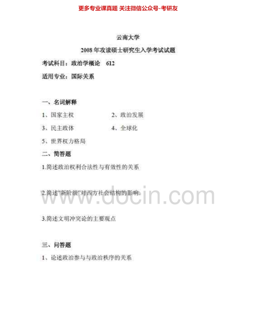 云南大学612政治学概论2007-2008、2014考研真题汇编.Image.Marked猴哥6个月前发布关注私信0.49MB3页06624云南大学612政治学概论2007-2008、2014考研真题汇编.Image.Marked此内容为免费资源,请登录后查看¥0 登录查看免费资源 第1页 / 共3页 第2页 / 共3页 第3页 / 共3页 已完成全部阅读,共3页 © 版权声明文章版权归作者所有,未经允许请勿转载。THE END考研专业课 喜欢就支持一下吧点赞24赞赏 分享QQ空间微博QQ好友海报分享复制链接收藏