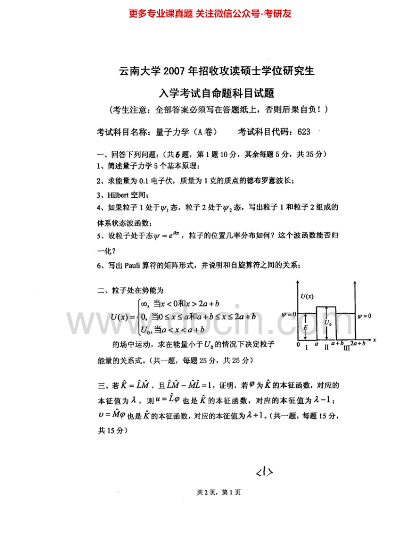 云南大学621量子力学03、07-08、14考研真题汇编猴哥6个月前发布关注私信1.06MB8页03260云南大学621量子力学03、07-08、14考研真题汇编此内容为免费资源,请登录后查看¥0 登录查看免费资源 第1页 / 共8页 第2页 / 共8页 第3页 / 共8页 该文档为免费文档,您可直接下载完整版进行阅读 © 版权声明文章版权归作者所有,未经允许请勿转载。THE END《云南大学》(621)量子力学考研资料考研专业课 喜欢就支持一下吧点赞60赞赏 分享QQ空间微博QQ好友海报分享复制链接收藏