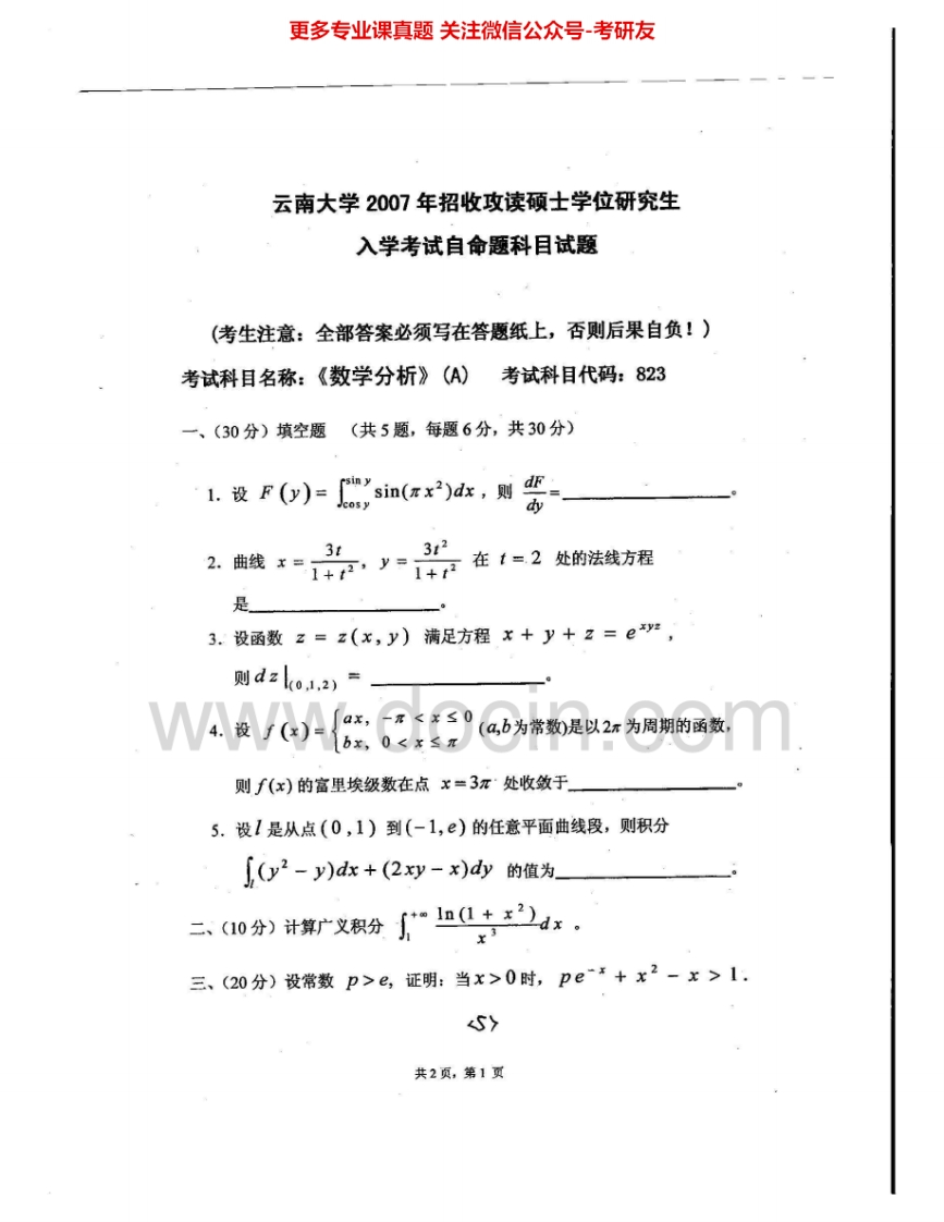 云南大学823数学分析2004、2007-2009、2014考研真题汇编.Image.Marked猴哥6个月前发布关注私信1.43MB9页09649云南大学823数学分析2004、2007-2009、2014考研真题汇编.Image.Marked此内容为免费资源,请登录后查看¥0 登录查看免费资源 第1页 / 共9页 第2页 / 共9页 第3页 / 共9页 该文档为免费文档,您可直接下载完整版进行阅读 © 版权声明文章版权归作者所有,未经允许请勿转载。THE END《云南大学》(823)数学分析考研资料考研专业课 喜欢就支持一下吧点赞49赞赏 分享QQ空间微博QQ好友海报分享复制链接收藏